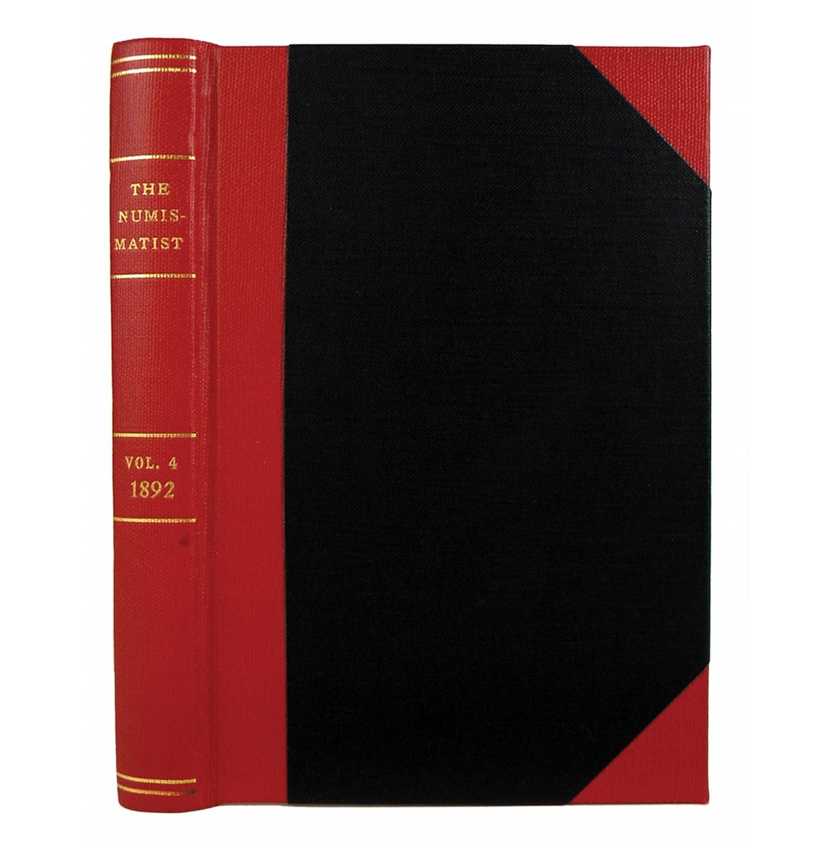 [American Numismatic Association]. THE NUMISMATIST AND YEAR BOOK FOR 1892. Vol. 4, Nos. 1-6, complete. [bound with] THE NUMISMATIST AND YEAR BOOK FOR 1892. Vol. V, Nos. 1-6, complete. Monroe, Michigan: Dr. Geo. F. Heath, January-June 1892 and July-December 1892. Twelve issues complete, bound in one volume. Small 8vo, later red and black cloth, gilt; original printed wraps bound in. Vol. IV: 18; ii, (21)-28, iii-iv, 29-30; (31)-46; (49)-66; (69)-86; (89)-106 pages; 6 portrait plates; text illustrations. Vol. V: (3)-18; (19)-34; (37)-52; (57)-76; (77)-92; (93)-112 pages; 2 portrait plates and two other plates, one double-page; text illustrations. Vol. IV issues folded for mailing. Generally fine. The two volumes comprising 1892, seldom offered complete. Heath's Numismatic Headlights commences with Vol. 4. Additionally, six biographies accompanied by halftone portraits are featured--Lyman Haynes Low, Samuel Hudson Chapman, Ed. Frossard, Joseph Hooper, Joseph Leroux, and David Harlow--with two more (Charles Taylor Tatman and Herbert E. Morey) following in Vol. 5. Other plates include a double-page table of China, the Mandchu Dynasty, and a plate of The Proposed World's Fair Souvenir Half Dollar, markedly different from the adopted design. Quite scarce. Ex Michael Spurlock library.
