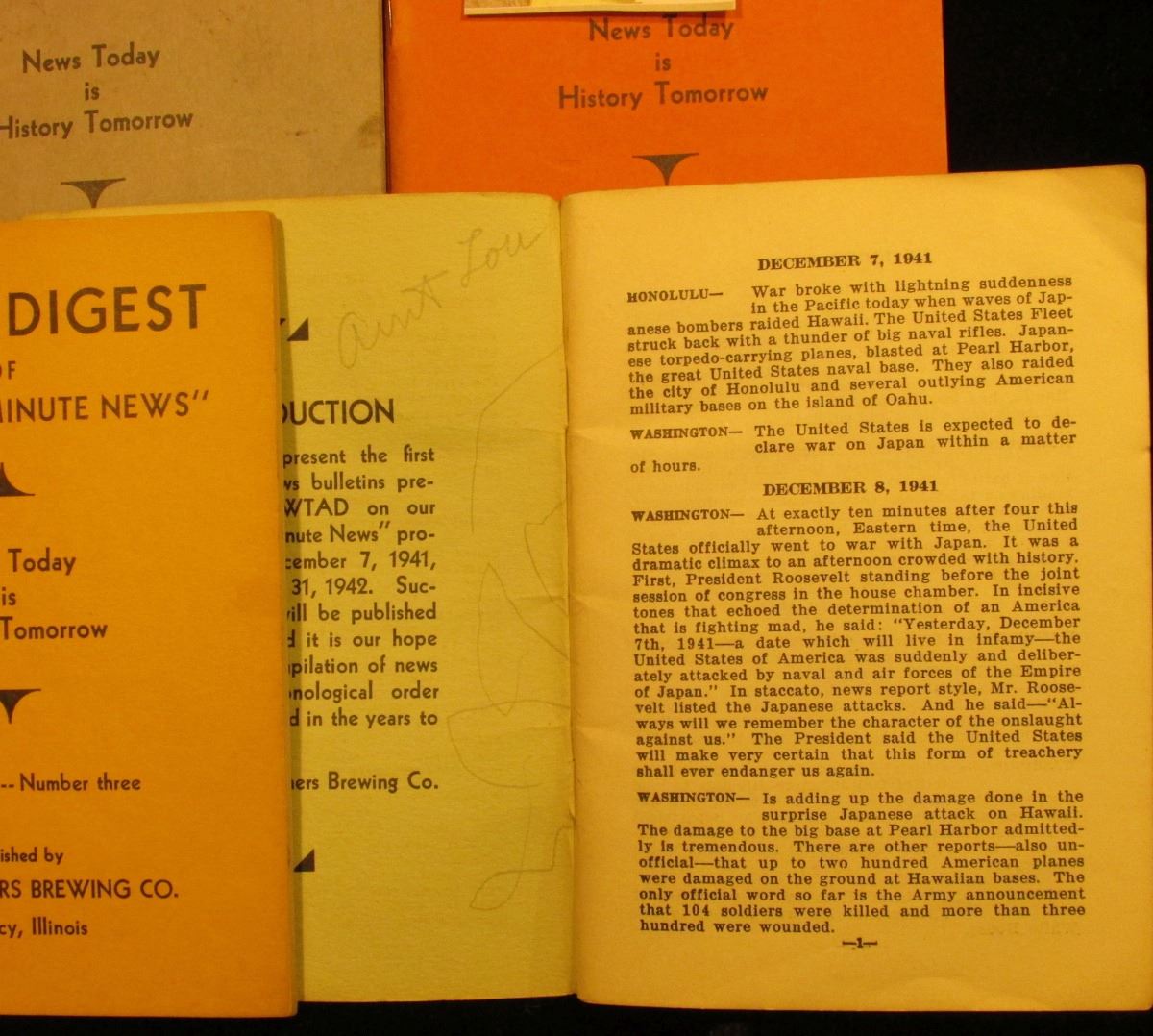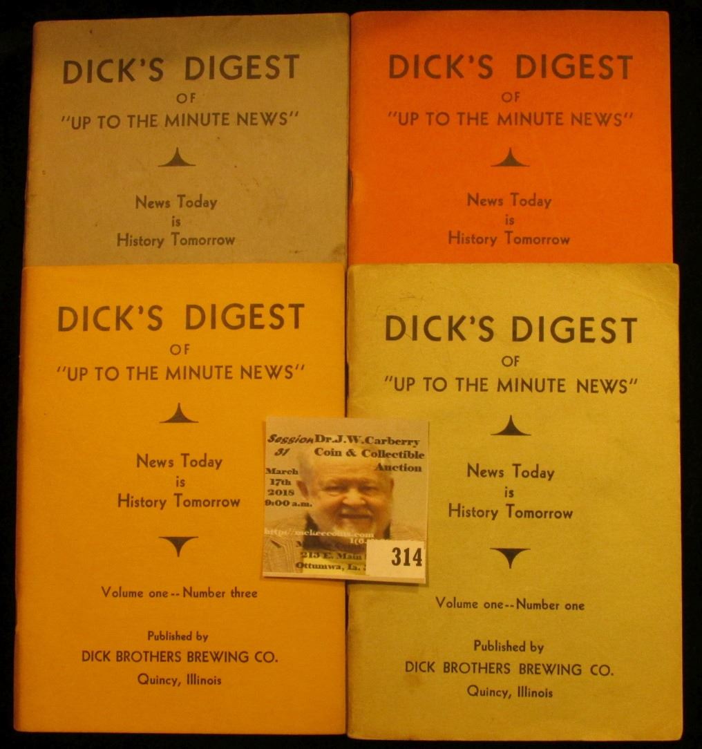 Volume One--Number one thru four "Dick's Digest of "Up to the Minute News" News Today is History Tomorrow" Published by Dick Brothers Brewing Co. Quincy, Illinois. Includes early World War II news.