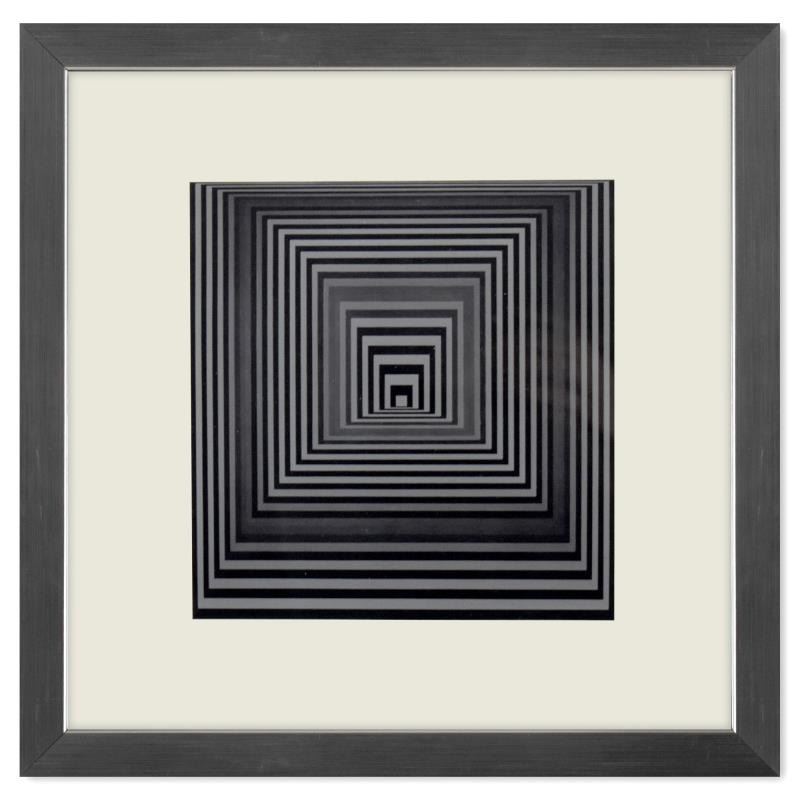 "Vonal - 4 de la série Vonal" is a heliogravure print on paper, published in 1971, by Victor Vasarely (1908-1997). This piece comes custom framed, with a letter of authenticity and with a 1976 Vasarely paperback. Measures approx. 11.5" x 11.5" (frame), 7" x 7" (image).
