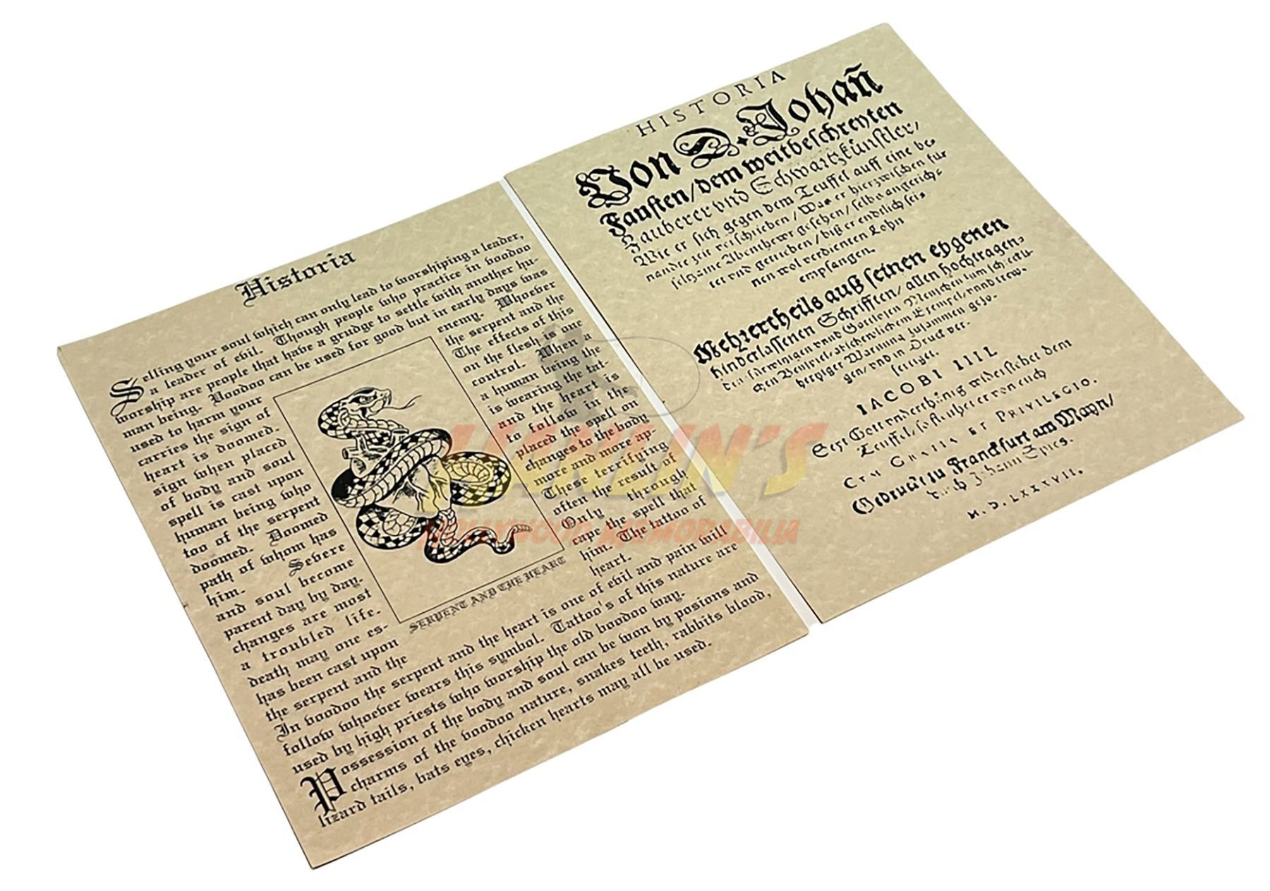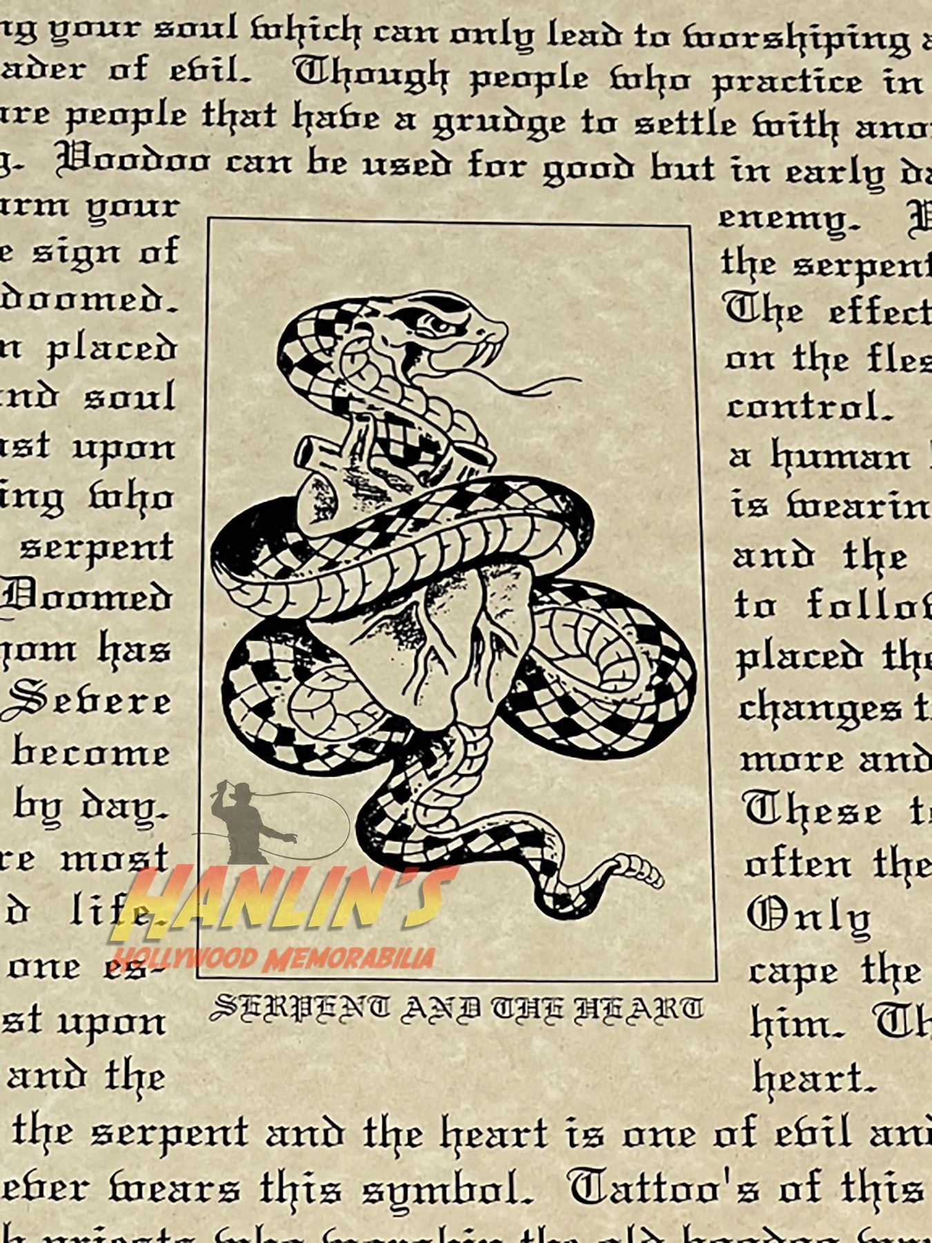 Original tattoo spell pages used in the production of the Rene Eram directed horror film 'Voodoo' (1995), where Corey Feldman stars as a youth who must contend with a Voodoo cult.