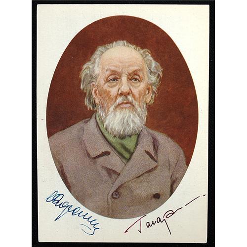 <Our item number 139857><B>Vostok 1, 1961, Gagarin & Korolev Autographs.</B> Signed on a 1957 picture postcard of Tsiolkovsky, father of the Soviet space program. The card represents three firsts - the "father" of the program, the Chief Engineer who developed the rockets that made it happen and the first man in space. Attractive and scarce. <BR>Estimated Value $350 - 500. <BR><BR>Our item number 139857<BR><IMAGES><P ALIGN="CENTER"><IMG SRC="http://www.goldbergcoins.net/liveauction/49jpegs/139857.jpg"> </P></IMAGES>