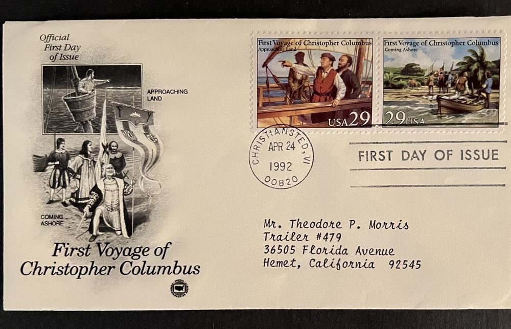 Voyage of Christopher Columbus First Day Cover. 3x6 inches