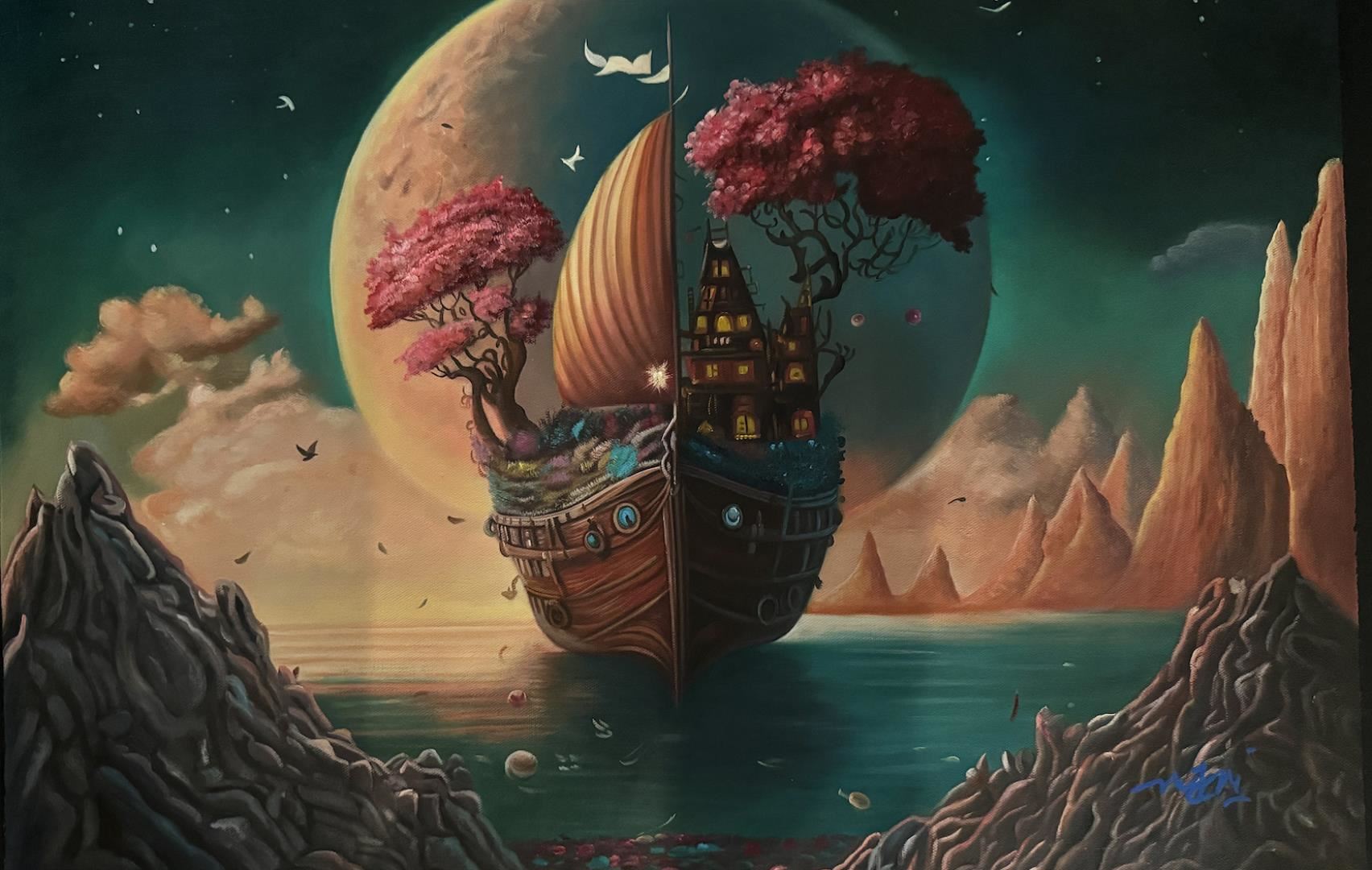 A stunning Artpiece in very surreal style, by a young American artist Mani. 20"x30" original on canvas w/ COA