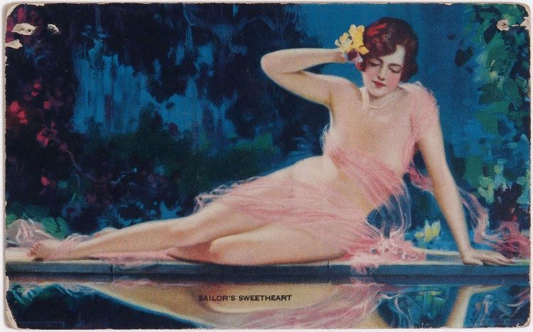This is a vintage (probably 1940s) mutoscope card featuring a pin-up print by Hy Hintermeister titled Sailor's Sweetheart. SIZE: 5 1/4" x 3 1/4".