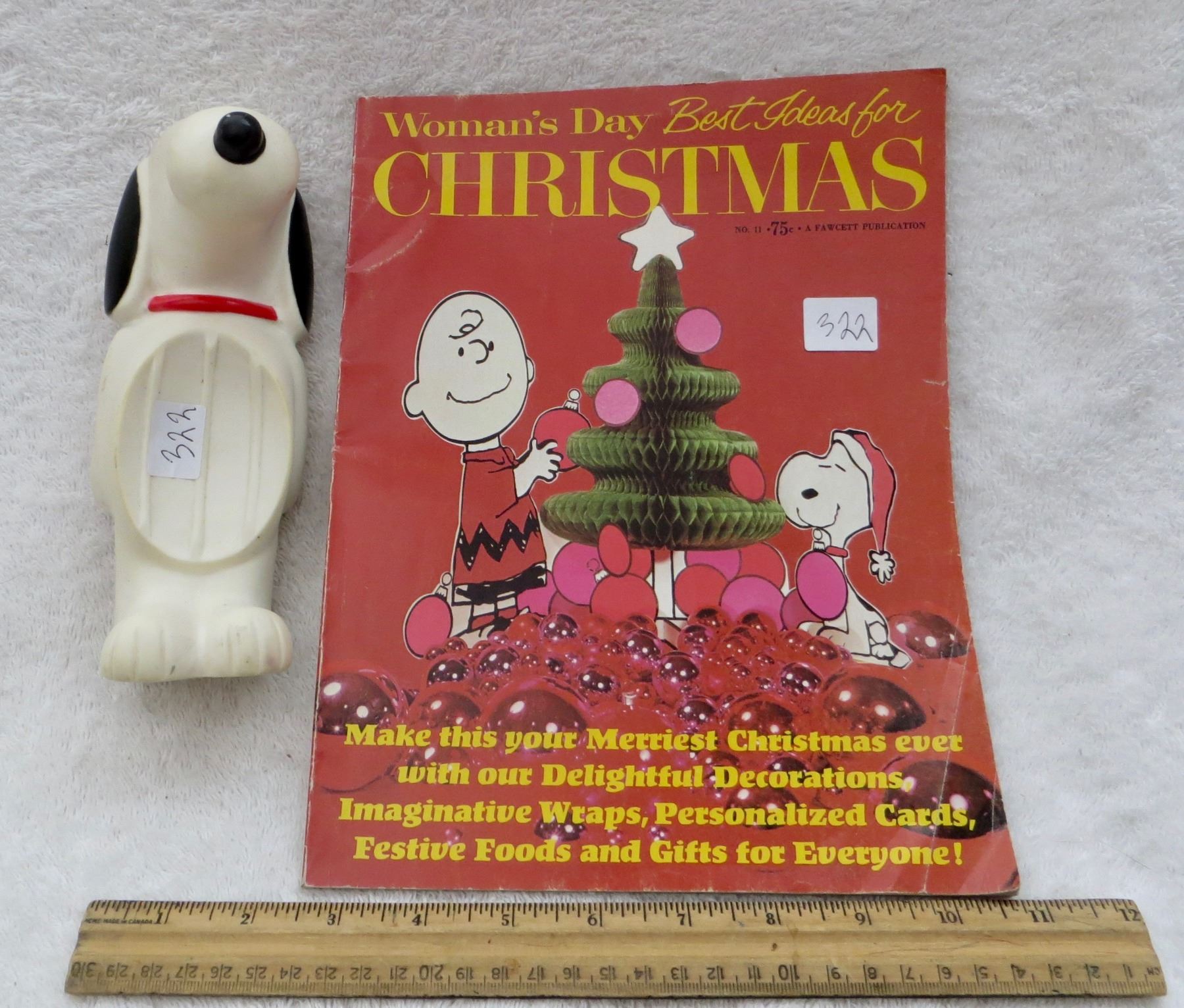 Vtg. Snoopy floating soap dish & Christmas 1969 Issue of Woman's Day with Snoopy cover