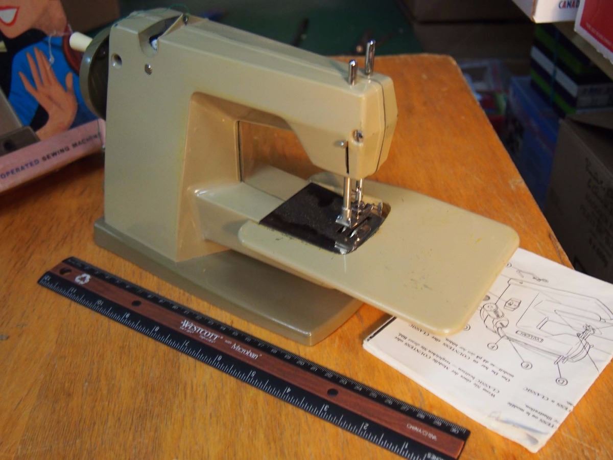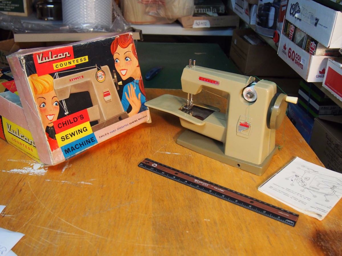 Vulcan Child’s Hand Operated Sewing Machine, Original Box, W/ Manual