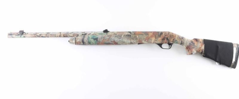 This is a modern semi-auto 12ga shotgun chambered for 2 3/4" & 3" shells. The 26" barrel has green fiber optic, adjustable rear sight attached to the vent rib and a red fiber optic front sight. There is also a raised, red fiber optic blade sight that was also added to the vent rib. The stock and forend are synthetic and the entire gun is finished in Realtree "Advantage Timber" camo. It comes with attached swivel studs, butt stock slip on cartridge holder, rubber recoil pad and a Carlson's screw in IM Choke. Bore look great some use but bright. NRA Excellent Modern Firearm