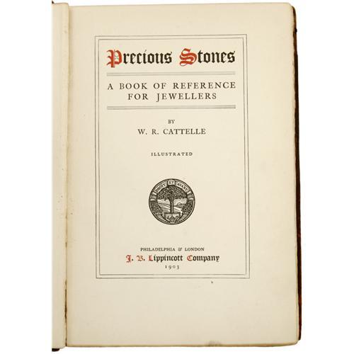 <B>W.A. Cattelle: <I>Precious Stones, A Book of Reference for Jewellers</B></I></B></I> (Philadelphia & London: J.B. Lippincott Company, 1903), first edition, 224 pages, 19 black and white plates at the end, full leather binding, marbled endpapers, 8vo (6" x 8.5"). This book has considerable wear to the covers and spine, but it is internally good. <I>Precious Stones</B></I> is a well respected text that "provides a general treatise on gemstones, written in a popular style, yet factual and full of interesting and authentic information."<BR><BR><b>Shipping:</b> Books & Catalogs (<a target="_blank" href="http://www.heritageauctions.com/common/shipping.php">view shipping information</a>)
