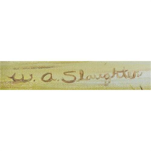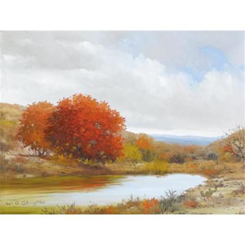 <B>WILLIAM A. SLAUGHTER (American, 1923-2003)</B></I><BR><I>Untitled (Autumn Landscape)</B></I><BR>Oil on canvas<BR>18 x 24 inches (45.7 x 61.0 cm)<BR>Signed lower left:<I> W. A. Slaughter</B></I><BR> <B>Condition Report:</B> Overall very good condition<BR><BR><b>Shipping:</b> Requires 3rd Party Shipping (<a target="_blank" href="http://www.heritageauctions.com/common/shipping.php">view shipping information</a>)