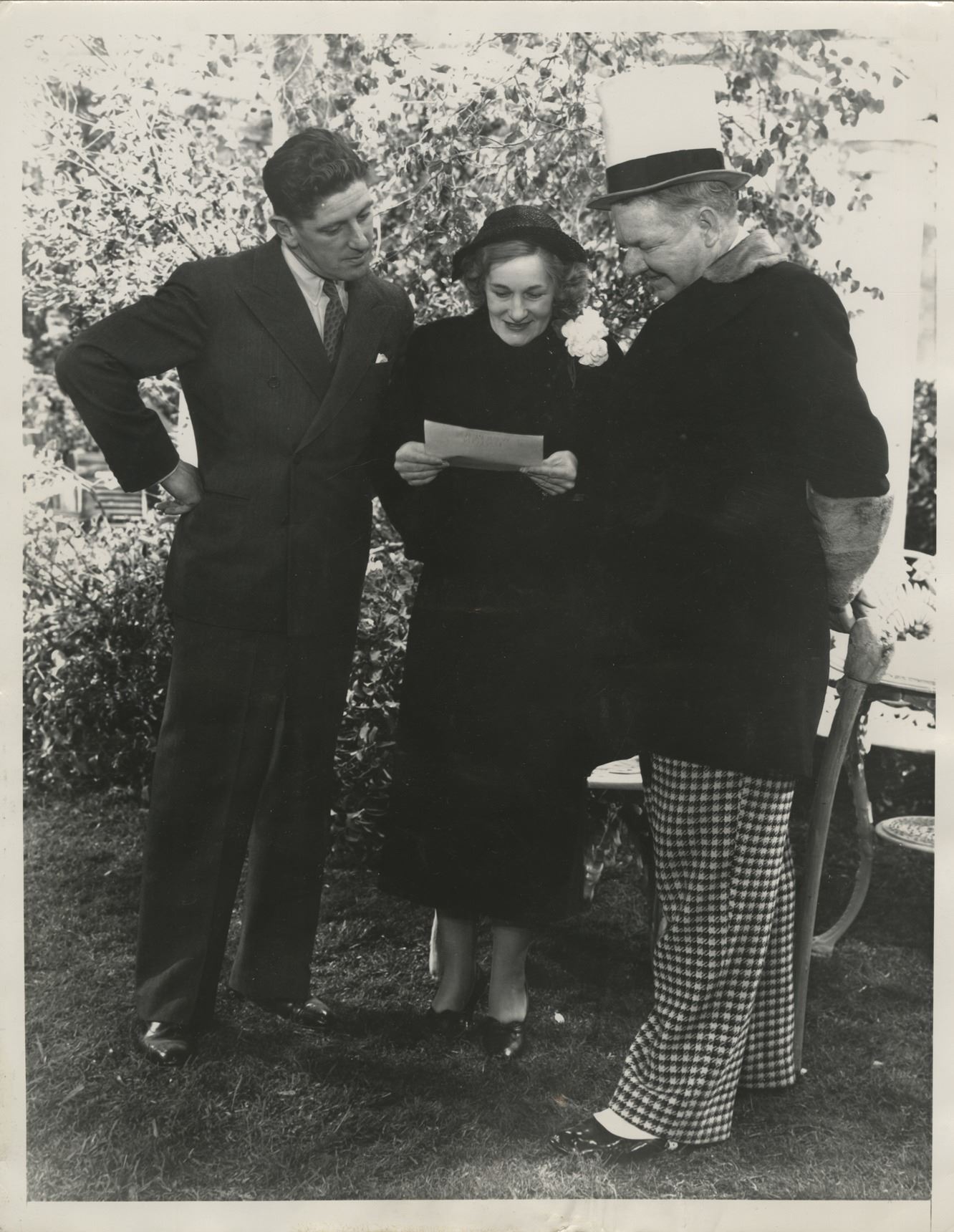 9. W. C. Fields (6) early production photographs including David Copperfield and The Bank Dick. (ca. 1930s) Vintage original gelatin silver photographs on single-weight paper ranging in size from 7 x 9 in. to 8 x 10 in. Including (1) David Copperfield, (1) The Bank Dick, (2) Never Give a Sucker an Even Break, (1) It's a Gift and (1) publicity photo of Fields, director Eddie Sutherland and a lucky sweepstakes winner. Exhibiting age and minor handling. In vintage good to very good condition. $100 - $150