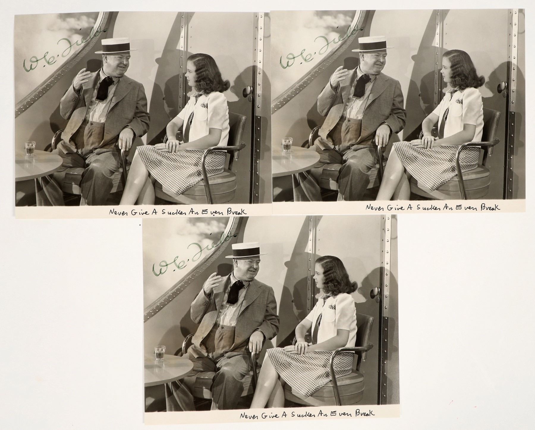 Lot of 3. Autographed b/w photos of W.C. Fields with Gloria Jean. Movie "Never Give A Sucker An Even Break". All photos are the same. In excellent cond.
