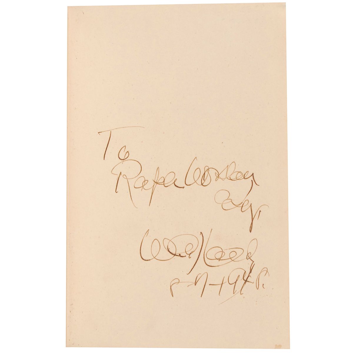 After payment has been made in full, RR Auction may, as a service to buyers, arrange to have property packed, insured and shipped at your request and expense. For shipping information, please contact RR Auction at (603) 732-4280. In circumstances in which RR Auction arranges and bills for such services via invoice or credit card, we will also include an administration charge. Packages shipped internationally will have full value declared on shipping form. (See Generally “Delivery; Shipping; and Handling Charges” §36 and 37 of the Term and Conditions of Sale).