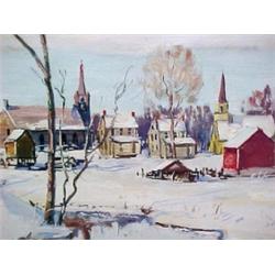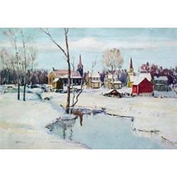 W. E. Baum, snow scene, Broomall, gouache on