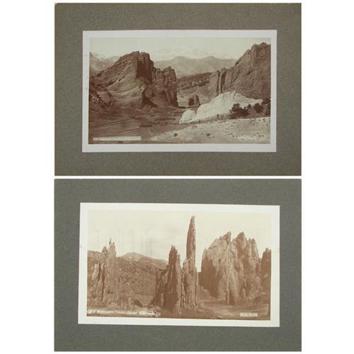 W.E. Hook, 2 Cabinet Cards, "Gateway, Garden of the Gods", #108 & "Ruins of Montezuma's Temple, Garden of the Gods", #119, 4 7/8" x 8" each