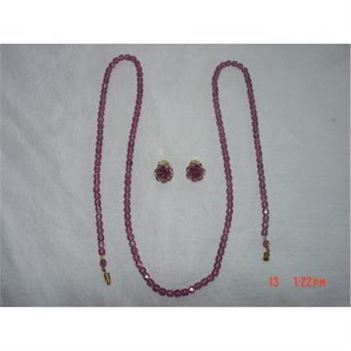 Look at this beautiful signed West Germany 3 piece purple amethyst faceted crystal beaded necklace and matching earrings. My guess is this set is from 1910-1950s. This glass crystal necklace is 31 inches long and the earrings are the old clipped style. Each earring is signed W Germany. The earrings are 1/2 inch across. Excellent condition