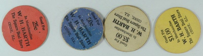 W.H. BARTIN MERCHANT TOKEN "THE SQUARE DEAL STORE" OISNE, IL (4 TOTAL)