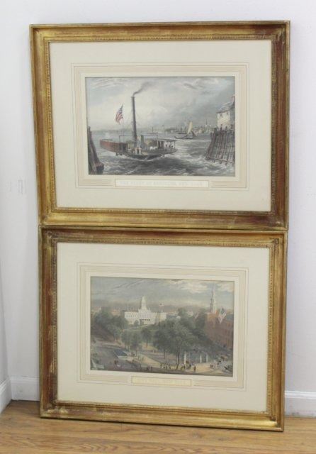 Including "The Ferry of Brooklyn, N.Y." and "City Hall, New York." Large folio. Approx. 12" H x 18" W sight, 28" H x 31" W framed.