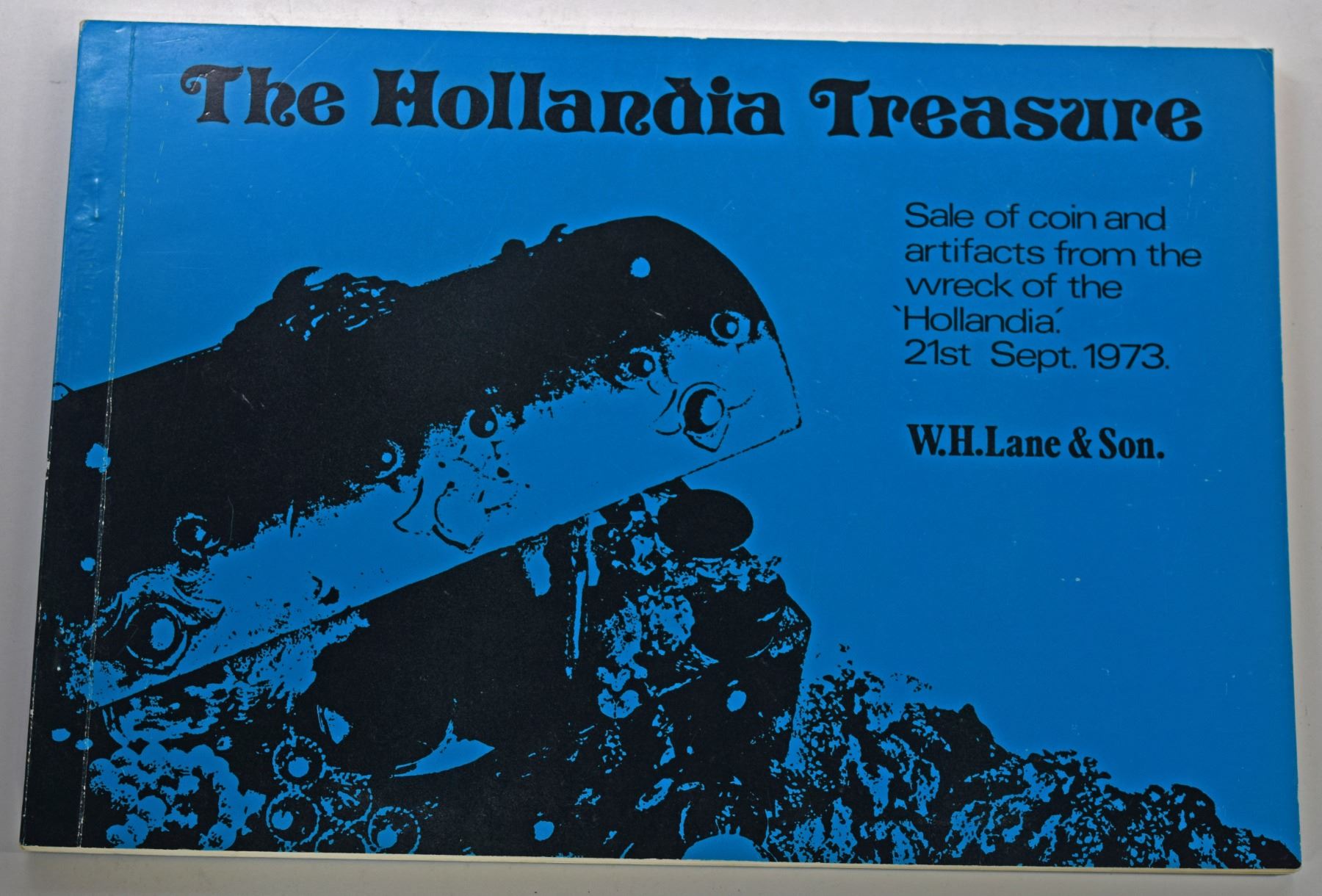 W.H. Lane & Son. THE HOLLANDIA TREASURE. September 21, 1973. 4to, 76 pages; Softcover; This auction catalog details 804 lots of coins (ducatons and pillar dollars) 16 lots of artifacts and a Dutch bronze mortar from the “Hollandia”, a Dutch East Indiaman which was wrecked in 1743 in the Scilly Islands. There is a description of the wreck and salvage, and a history of the pillar dollar. Subject: History - Sunken Treasure