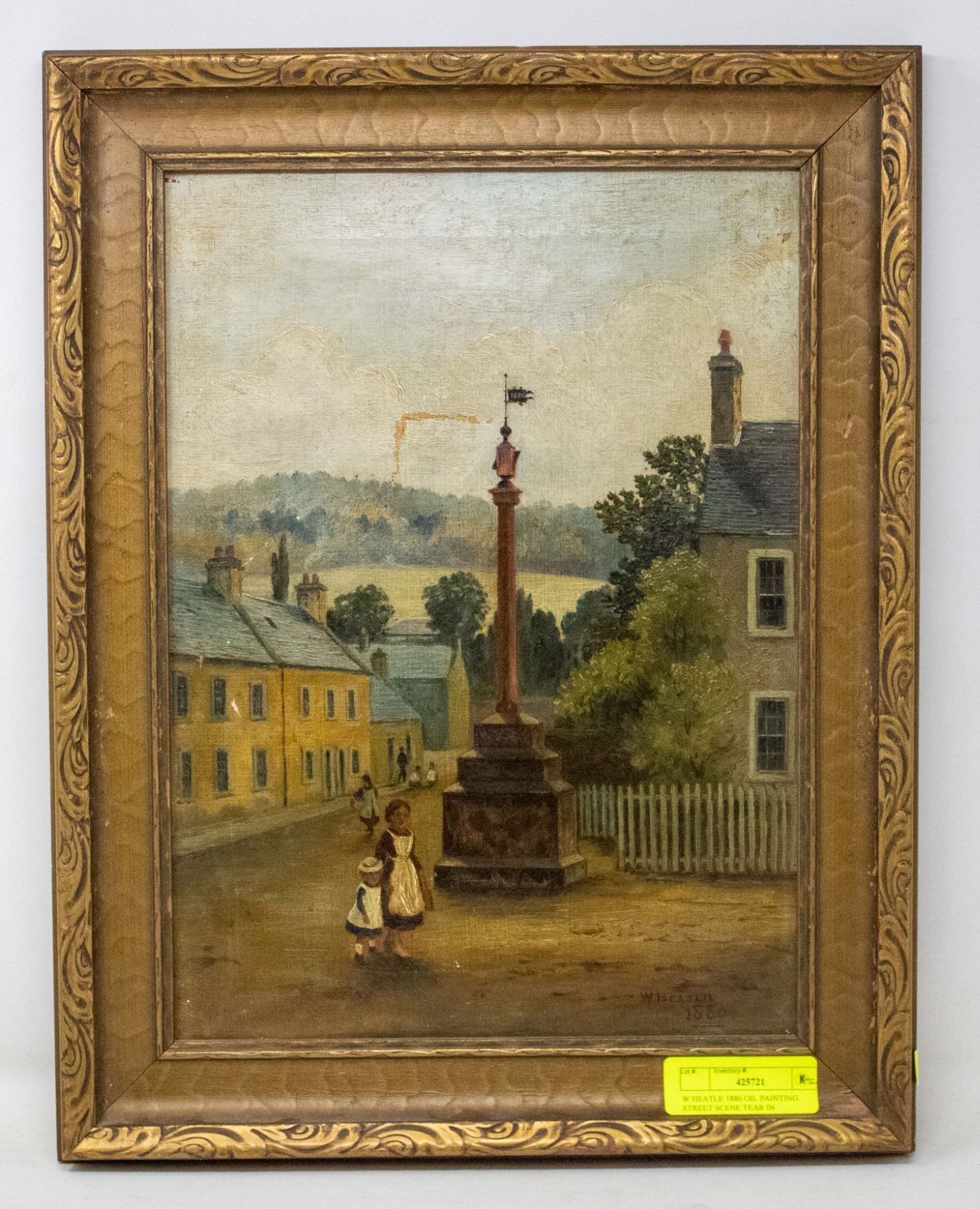 W HEATLE 1880 OIL PAINTING STREET SCENE TEAR IN