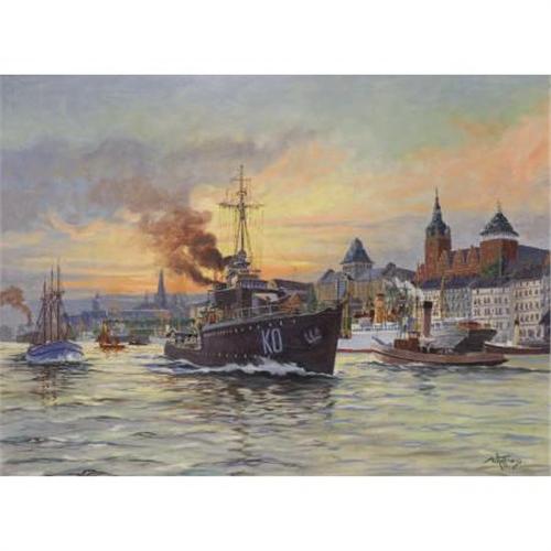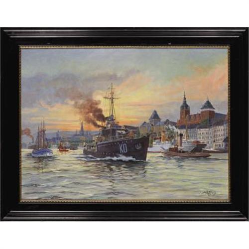 W. Hoffmann, Oil on canvas, Harbour at Sunset