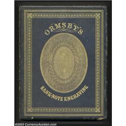 <TABLE cellSpacing=0 cellPadding=0 width="100%" bgColor=#000000 border=0><TBODY> <TR><TD width="100%"><TABLE cellSpacing=1 cellPadding=3 width="100%" border=0><TBODY><TR><TD width="100%" bgColor=#79735c><FONT face=arial color=#ffffff size=3><B>Description</B> </FONT></TD></TR><TR><TD width="100%" bgColor=#ffffff><FONT face=arial size=2><B>W. L. Ormsby's "Bank-Note Engraving".</B></I> Ormsby's 1852 Book <I>Bank-Note Engraving</B></I> has long been recognized as the finest work of its kind, and the appearence of any copy on the market is a major event. We are offering here what is believed to be the <B>finest known</B></I> copy of this magnificent book along with Ormsby's handwritten letter presenting this volume to Present-elect Franklin Pierce. The letter reads:<BR><BR>New York Jan 31 1853<BR>Dear Sir:<BR>Allow me to present you with a copy of my late work on Bank Note Engraving which will explain the cause of the vast amount of counterfeiting in this country. This is the first publication on this subject, and it is daily growing more and more important to every person in the community. I beg permission to call on you, at some future time, when my plans for constructing bank notes to prevent forgery are mature, that I may have an opportunity of convincing you of the utter insecurity of our present paper money, and the necessity of Legislative action on the subject. At present I will only ask your attention to the important requisites of a Bank Note which constitute its value - there are but two - first that the Bank be good - second that the note be genuine. The people loose (sic) more by counterfeiting money than by broken banks. It is therefore of as much importance to the poor people to have the note genuine as it is to have the Bank good. It is my object and aim to instruct the people in the art of Bank Note Engraving to the end that our General Banking Laws may be amended, so that they should define no less particularly the manner in which a note must be engraved than the manner in which the bank must be organized.<BR>Many of the counterfeit bills in circulation are absolutely the work of the original engravers. Counterfeiters obtained their work in spite of their utmost efforts to prevent it. This is all owing to the patch work system of constructing the note and the use of dies in the engraving of plates.<BR>My plan is to have a Bank Note one design or picture, with all the lettering interwoven in it. The whole to be engraved on the plate by the hand of the artist with out the use of dies. A counterfeiter then would be obliged to do the work himself in stead of employing others who do not know for what purpose their work is to be used. On turning to page 52 you will learn how a counterfeit plate of a five hundred dollar Treasury note was engraved for a counterfeiter by the very engraver who executed the original plates! Such things have frequently occurred - the matter is seriously alarming to every business man.<BR>Any encouragement which I may receive from you will be gracefully received by<BR>Your most obedient humble Sevt,<BR>W. L. Ormsby<BR><BR>The book itself is inscribed on the blank flyleaf, "Presented to Gen. Frank. Pierce by his humble Sevt. The author W.L. Ormsby." Elaborately gold leafed on both front and back covers, the 100+ page master work measures thirteen-and-a-half inches by ten-and-a-half inches and contains a large number of beautifully detailed, superbly engraved plates, including a tri-color red, blue and brown frontispiece. The book is in flawless, as-issued condition, fully tight in its binding with only a few, very minor scuffs at the edges of the cover. Included with the book are some items of correspondence between previous owners, one of which discusses a possible $16,000 valuation in 1991 and another which presents a history of the ownership of the book since 1853. We auctioned this book in May of 1998 and at that time it realized just over $9,000. This book would be the crowing glory in any numismatic library or the ultimate association item in a collection of Obsolete Bank Notes. (15,000--up) </FONT></TD></TR></TBODY></TABLE></TD></TR></TBODY></TABLE><BR><TABLE cellSpacing=0 cellPadding=0 width="100%" bgColor=#000000 border=0><TBODY><TR> Important notice: Heritage usually auctions material at the rate of 200-250 lots per hour. On some occasions eBay Live bid software or the Internet may not be able to keep up with the pace of the auction. We recommend placing a realistic absentee bid now as insurance to avoid disappointment. Occasionally the auctioneer may eliminate or reject an eBay Live bid, and the auctioneer may also reopen a lot after the close of the eBay live bidding (usually because we missed an audience bid), and may reject your bid even if it shows you as the winning bidder. By bidding via eBay Live, you agree that Heritage may award the lot to another bidder at its sole discretion under the circumstances described above or any other reasonable circumstances. Also please note that all Heritage lots purchased through eBay Live carry a 20% Buyer's Premium. Please make sure you read the Terms and Conditions before you bid.</TR></TBODY></TABLE>
