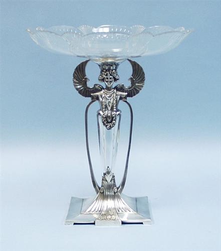 W.M.F. - An early 20th century silver plated centrepiece in form of a winged bust supporting an etched glass tazza. With impressed mark and numbered 225. 14" high.