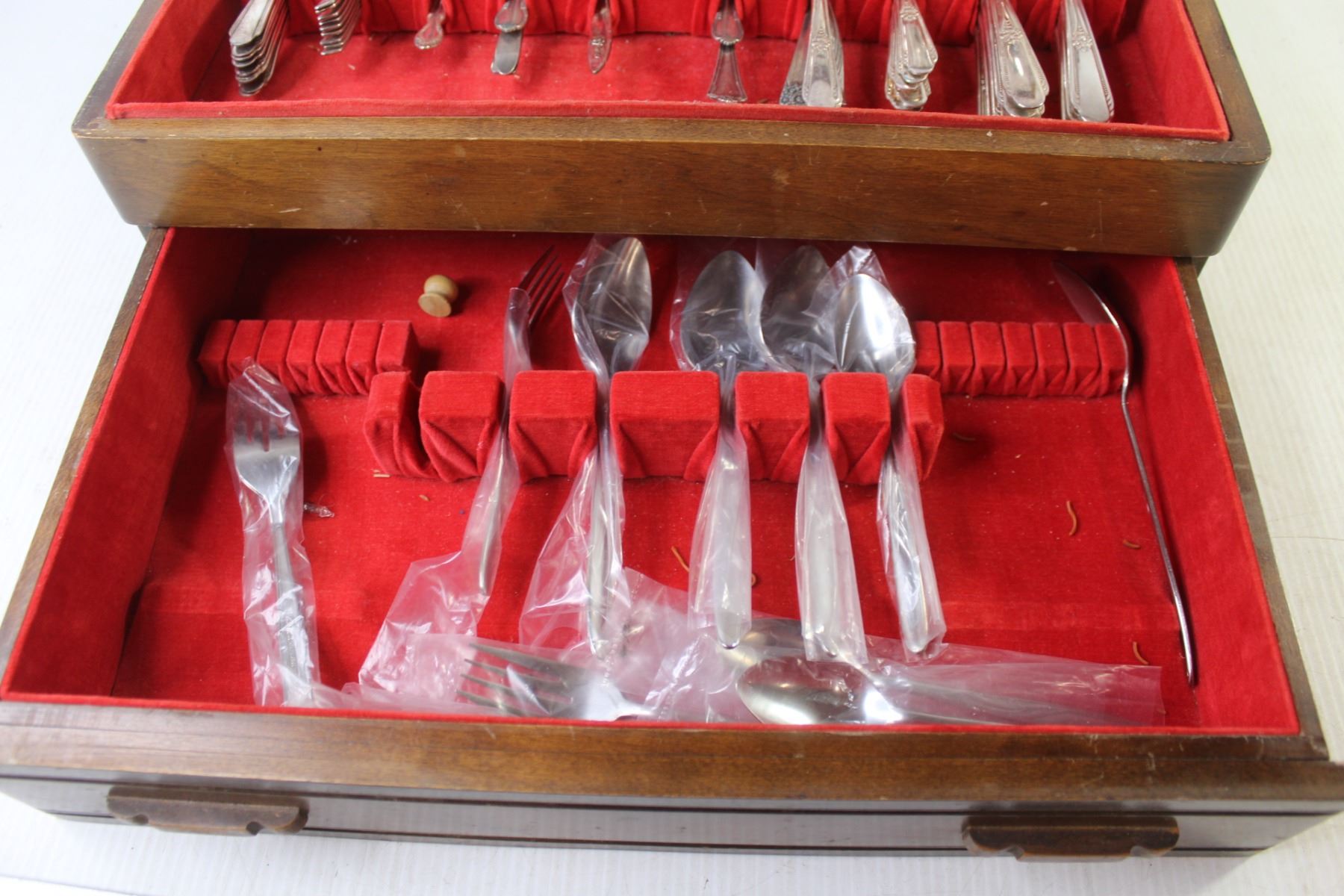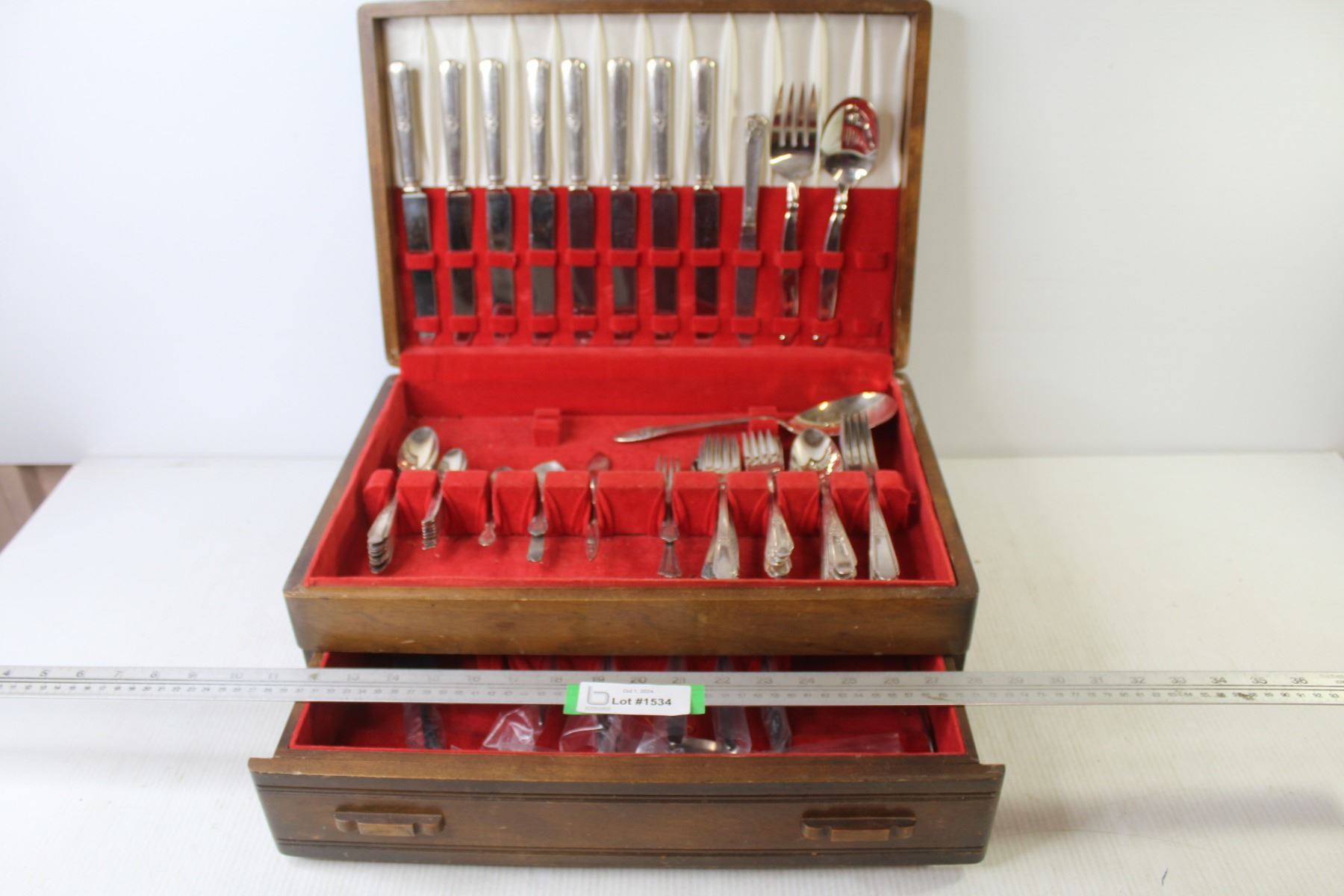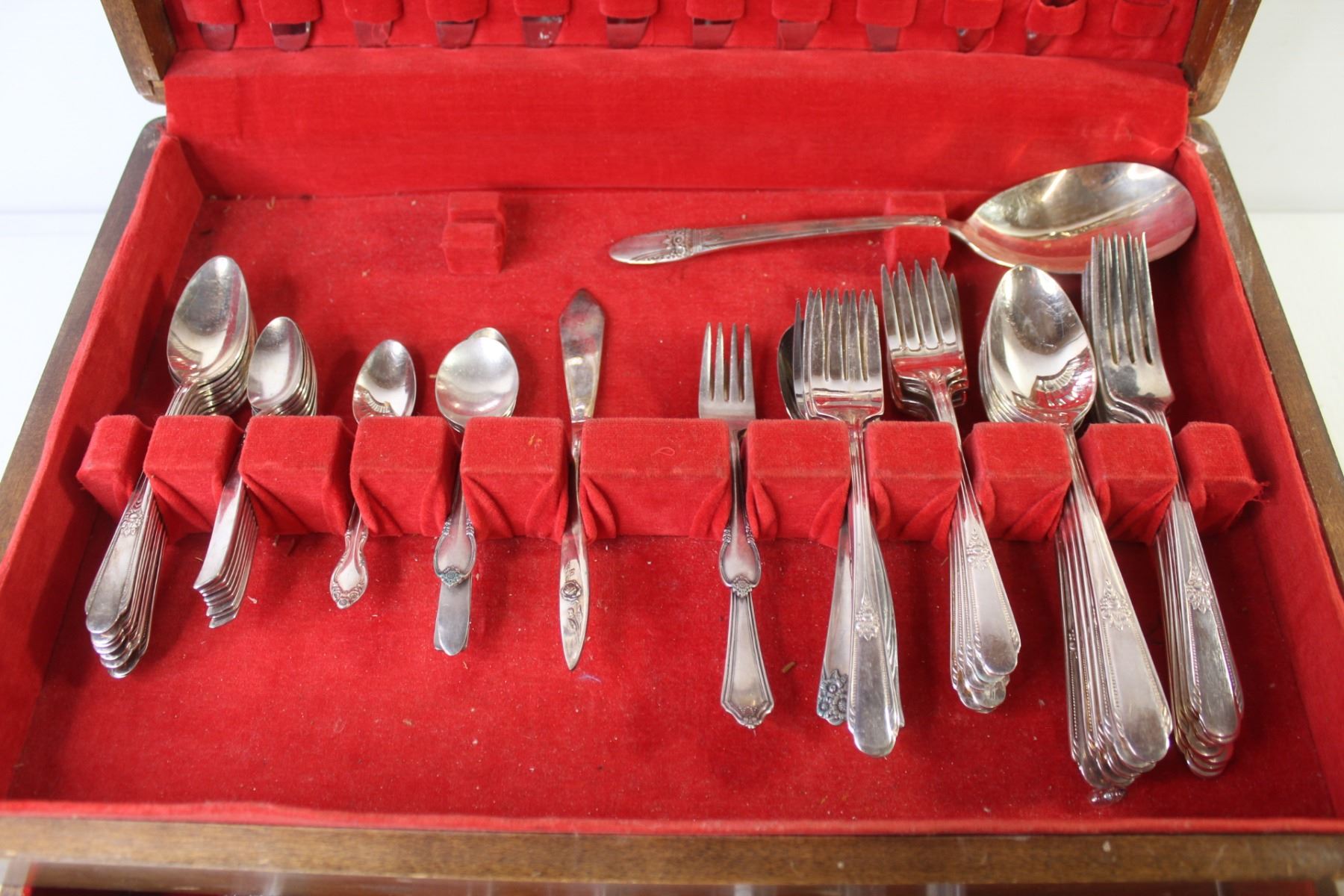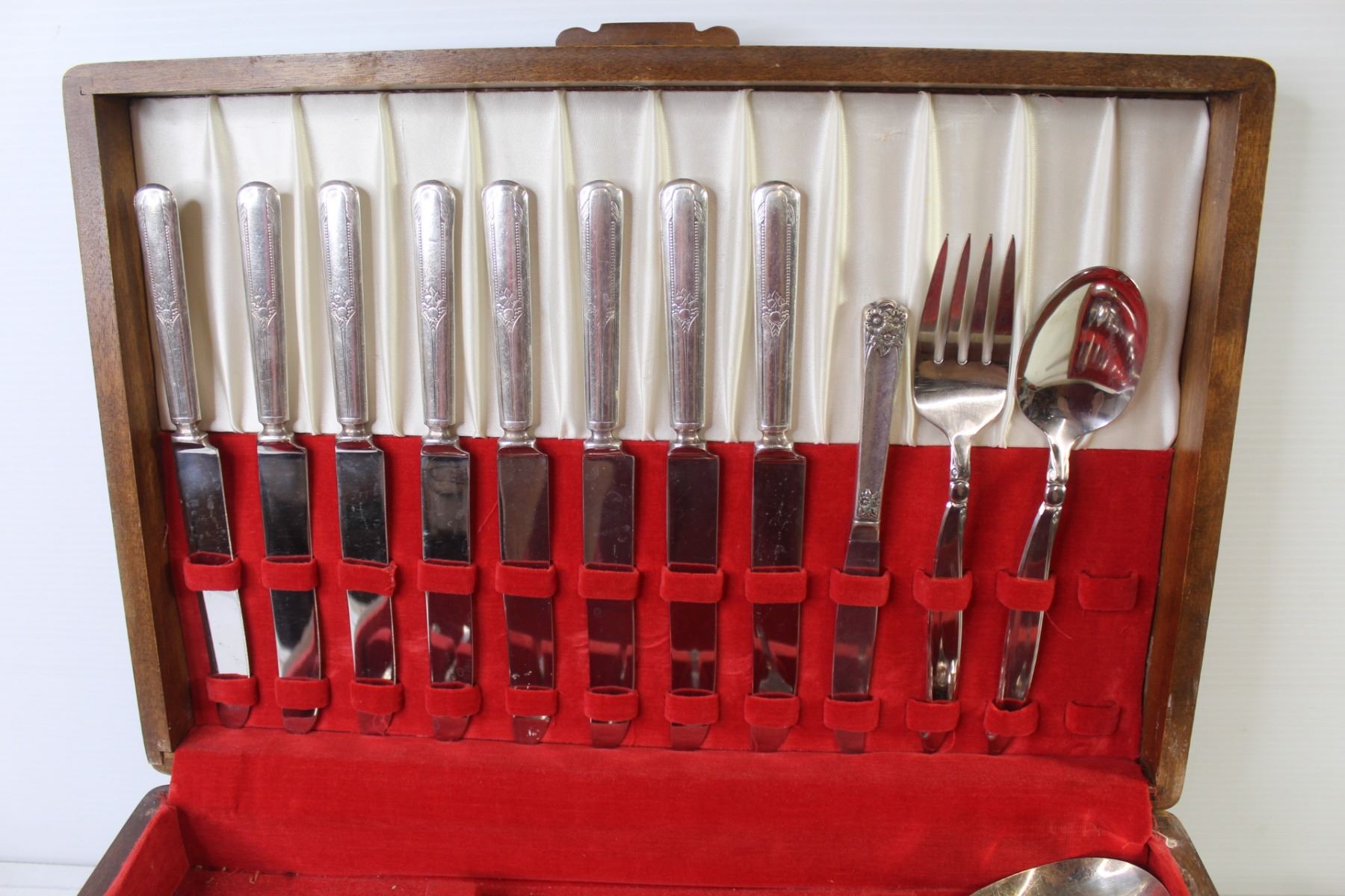 W.M. Rogers Cutlery in Wooden Case (case lid is broken off)