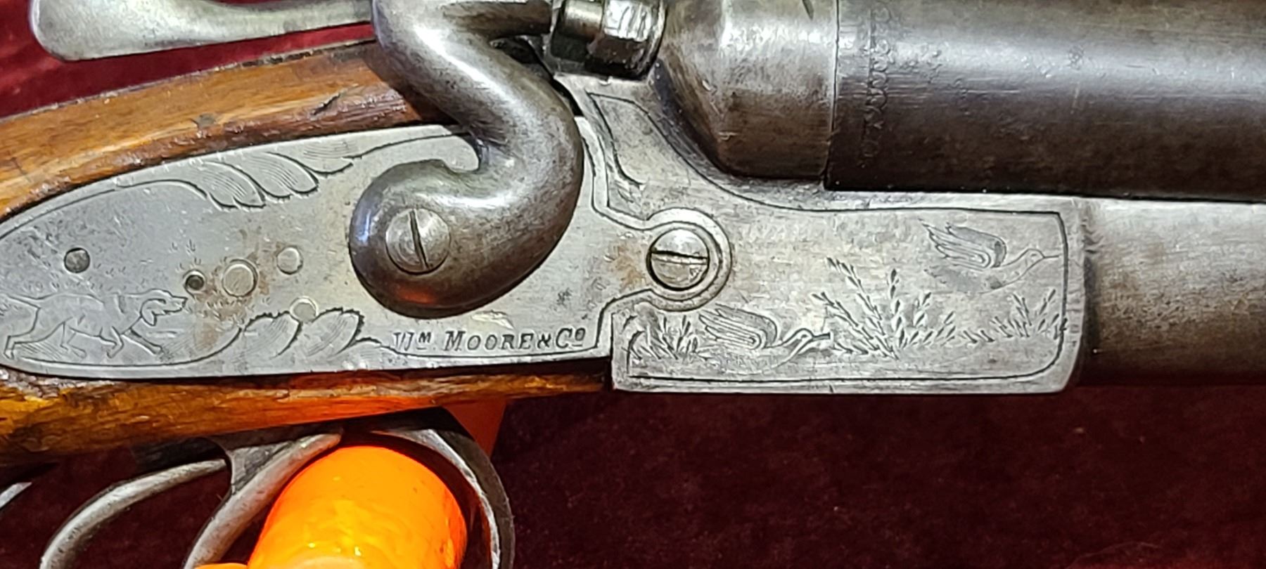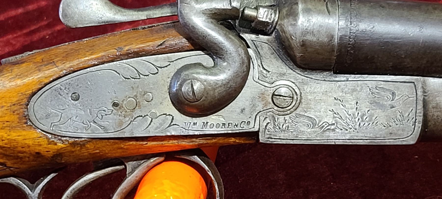 W. MOORE HAMMER GUN, ALL ORIGINAL GOOD STOCKS 30 INCH BARREL (315)