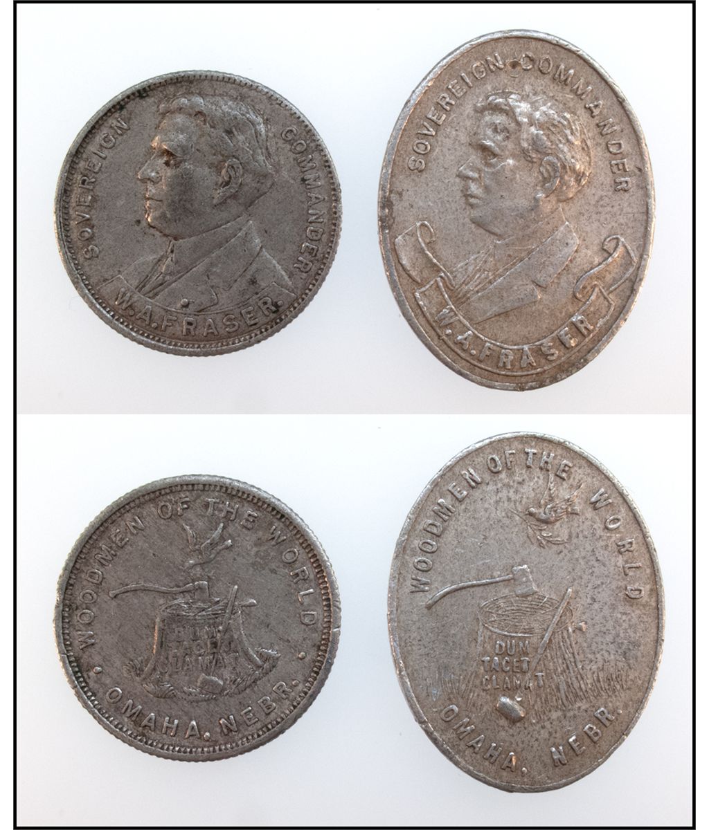 Woodmen of the World Token Pair- SOVEREIGN COMMANDER W. A. FRASER (aluminium)