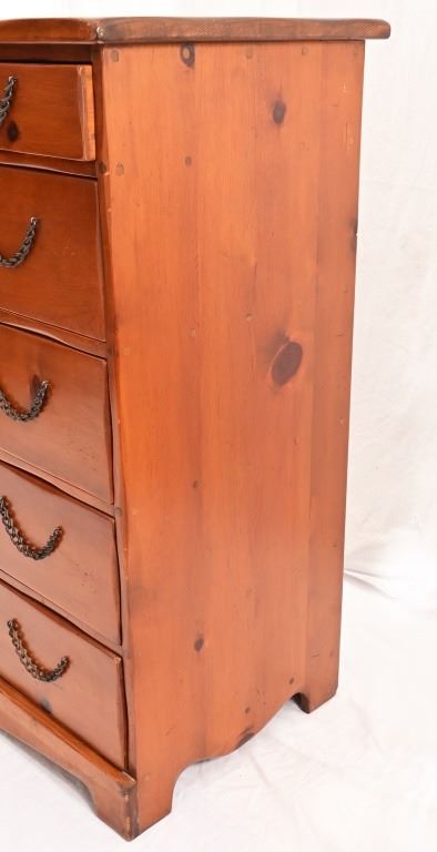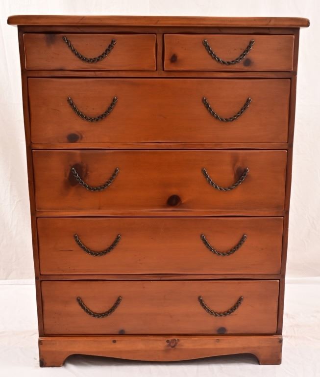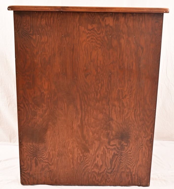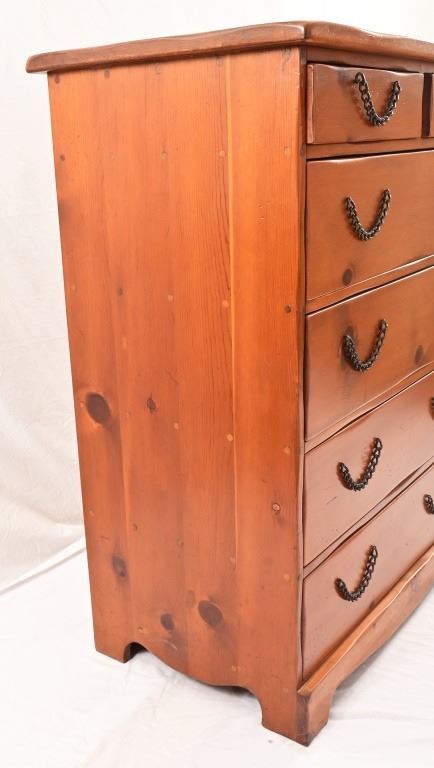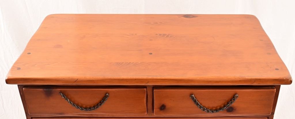 Six drawers, with W.R. Dallas/Texas Spoke-Leg furniture brand seen on the side of the drawers. Measures 20" x 34" x 43"