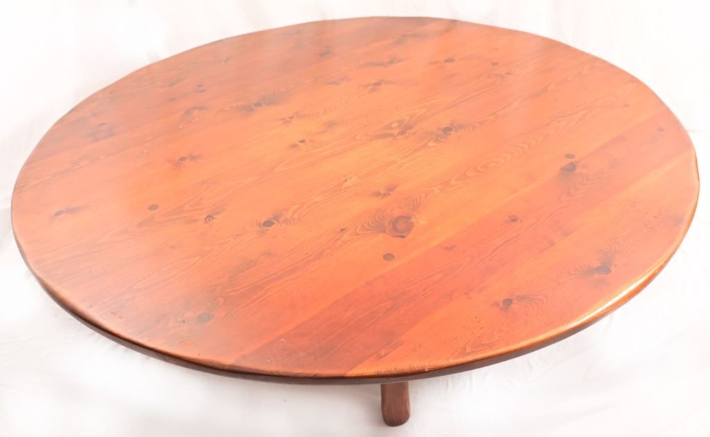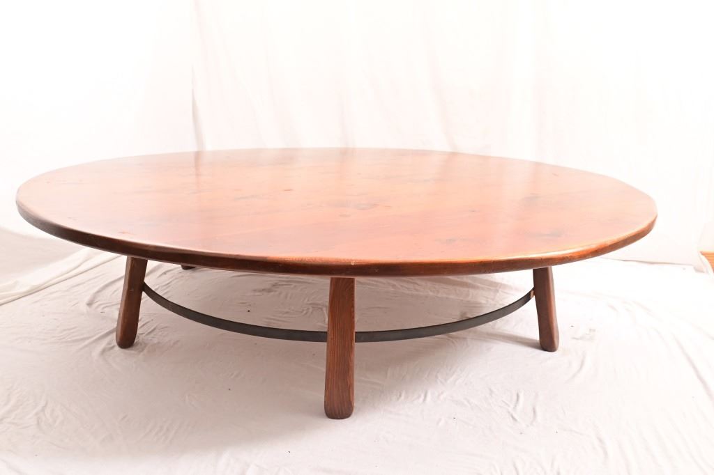 Stands 17" tall, top has 72" diameter. W.R. Dallas/Texas Spoke-Leg furniture brand marked on underside.