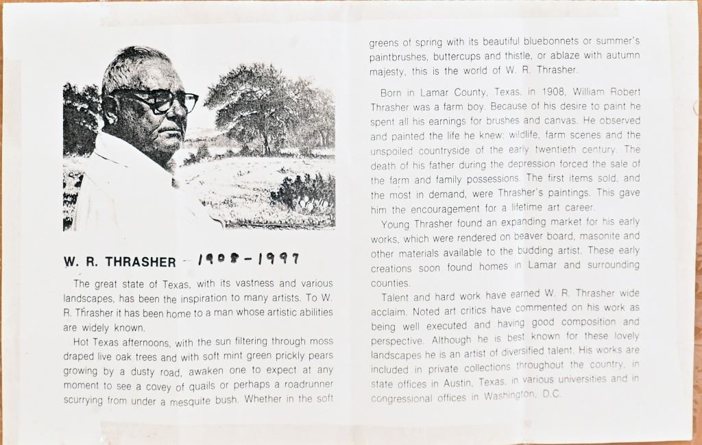 William Robert Thrasher (Texas 1908-1997). Oil on board 15.5" x 25". Frame measures 23" x 33"