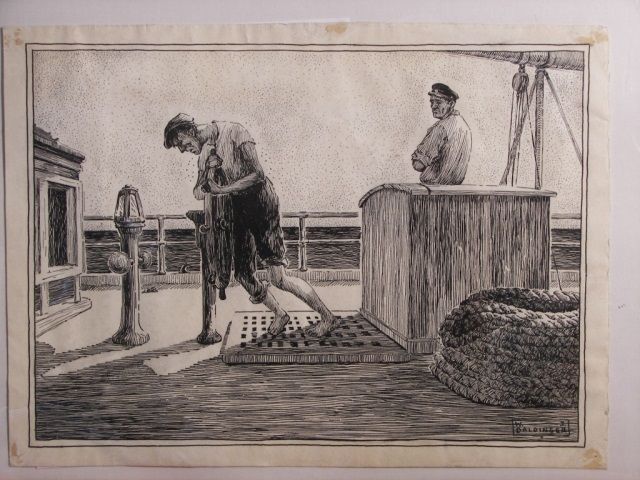 W. S. Baldinger, Ink Drawing , W. S. Baldinger, , Ink Drawing , Original Illustration , 11" x 15" , Signed Lower Right , (7829) From Joseph Conrad, Lord Jim