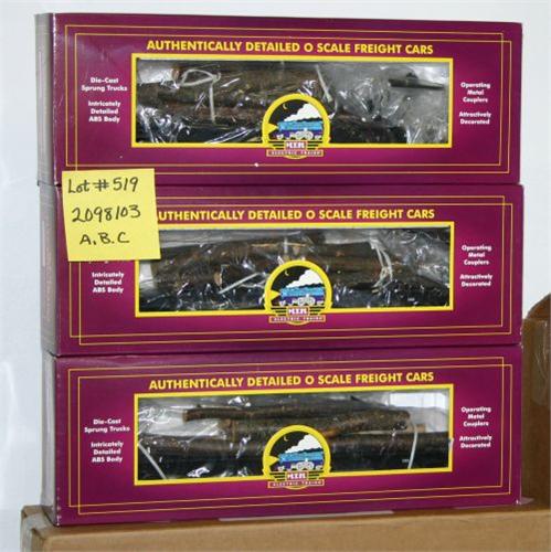 #2098103A, #2098103B, & #2098103C (3) W Va. Pulp & Paper Log Cars with Logs. Excellent original boxes in original shipping box.