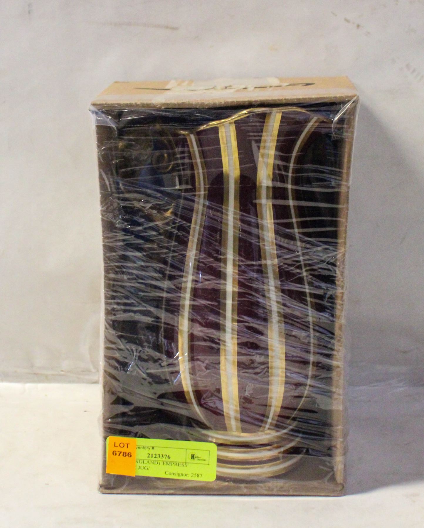 PITCHER 1L, 9" X 4"; MAROON, WHITE & GOLD; VINTAGE C1950S
