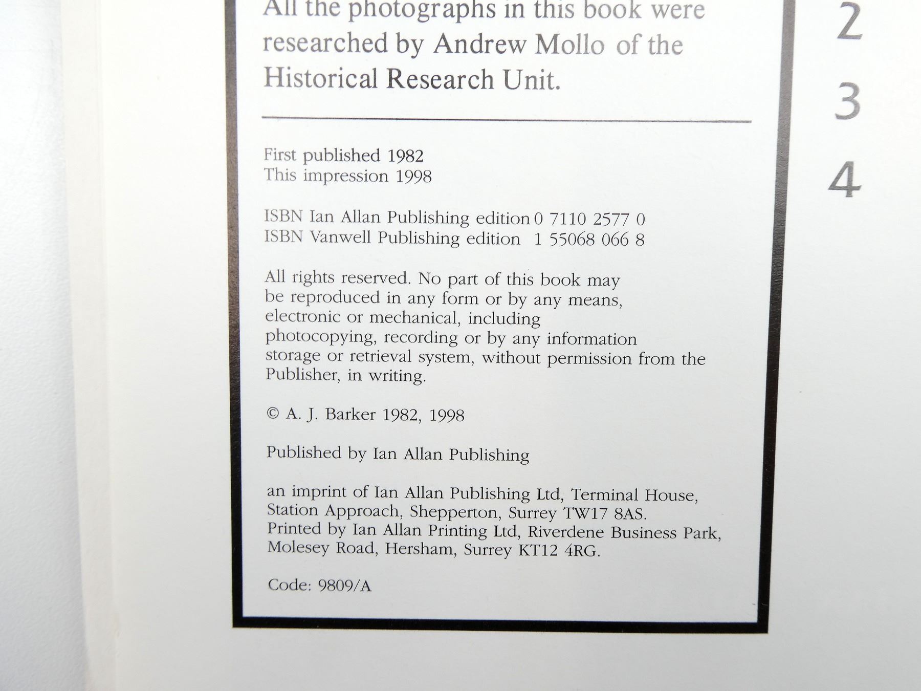 (1) BY A. J. BARKER, SOFT COVER, ISBN: 0-7110-2577-0. SEE PHOTOS.