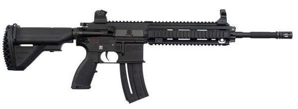 Manufacturer:Walther Arms Inc|Heckler & Koch Model #:H&K 416-22 Rimfire Type:Rifle: Semi-Auto Finish:Matte Black Stock:Black Synthetic, 4 Position Retractable Sights:FT: Fixed RR: Adjustable Windage & Elevation Barrel Length:16.1" Overall Length:30.2" Retracted, 34.5" Extended Weight:6.8 lbs Caliber:22LR Capacity:20+1 Action:Semi-Automatic # of Mags:1 Receiver:Matte Black Muzzle:Flash Suppressor Features:Pistol Grip with Storage Compartment