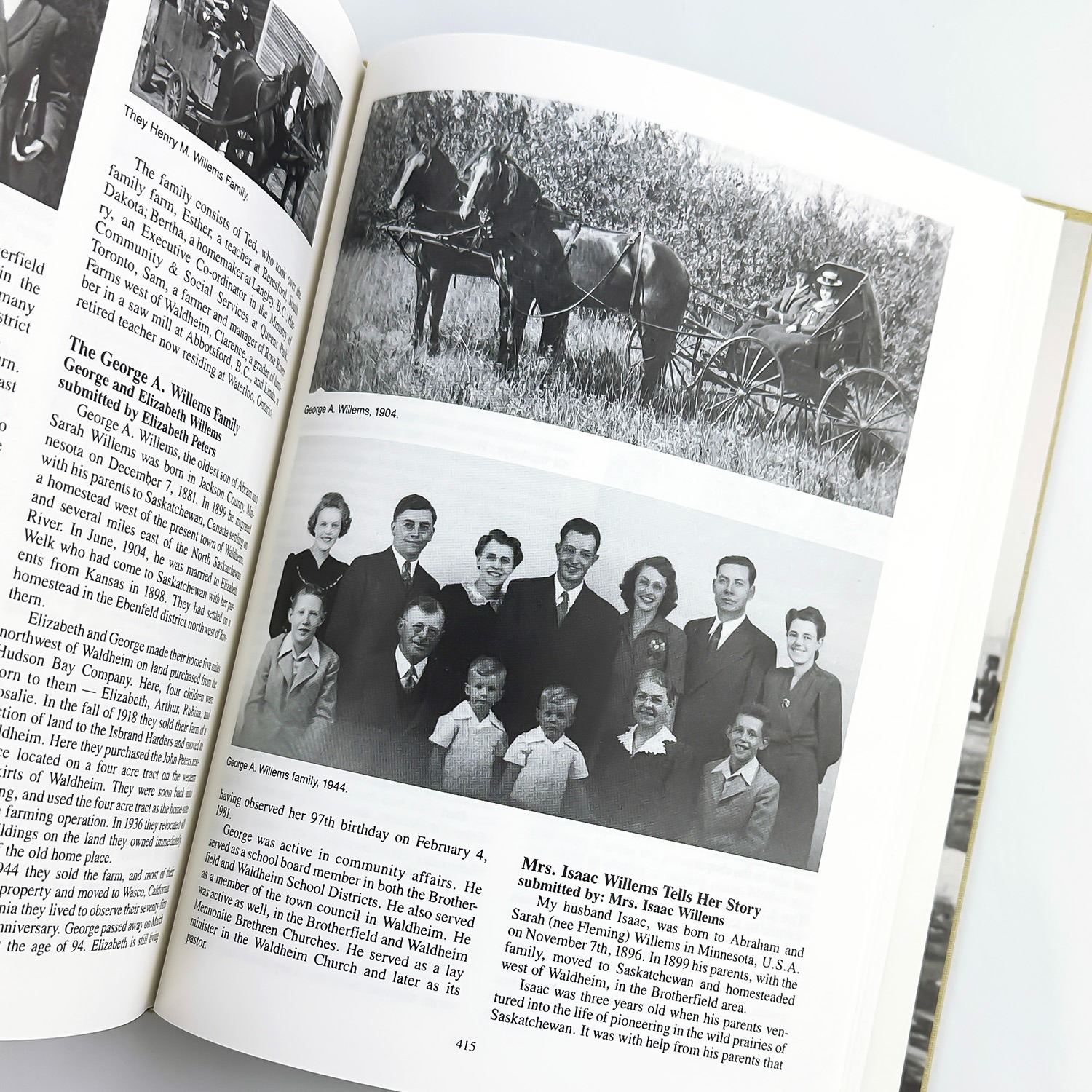#8591 - WALDHEIM SASKATCHEWAN, CANADA CANADIAN HISTORY BOOK. KURT WALDHEIM (SECRETARY GENERAL OF UNITED NATIONS) REMEMBERS THE PAST. HISTORY OF WALDHEIM SASKATCHEWAN - SCHOOLS, CHURCHES, SPORTS, BUSINESSES, EARLY YEARS, FAMILIES, WAR YEARS ETC. HARDCOVER BOOK - FIRST PRINTING 1981 - FRIESEN PRINTERS - 470 PAGES. MEASURES: 8.75” X 11.25”