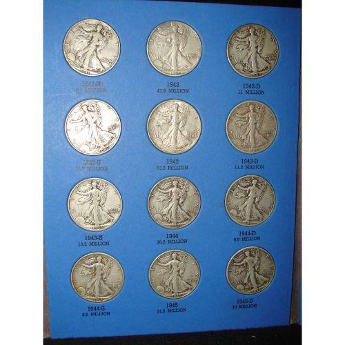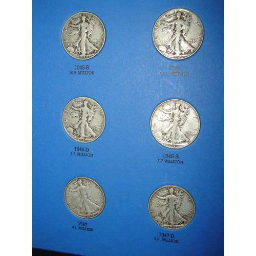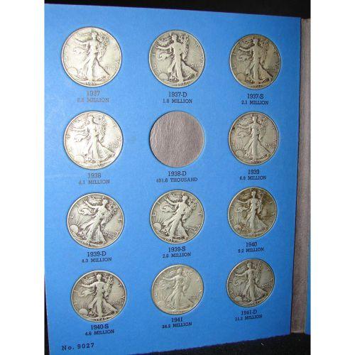 ALBUM OF WALKING LIBERTY HALF DOLLARS. 1937 to 1947. Missing 1938-D.