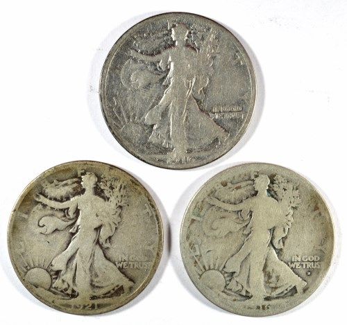 WALKING LIBERTY HALF DOLLAR LOT: 1916 VG, 1916-D G, 1921 G