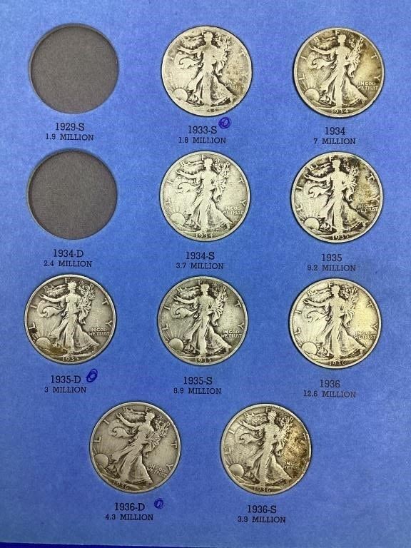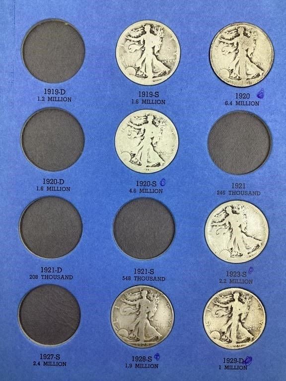 WALKING LIBERTY HALVES 1916-1936 (19 COINS)