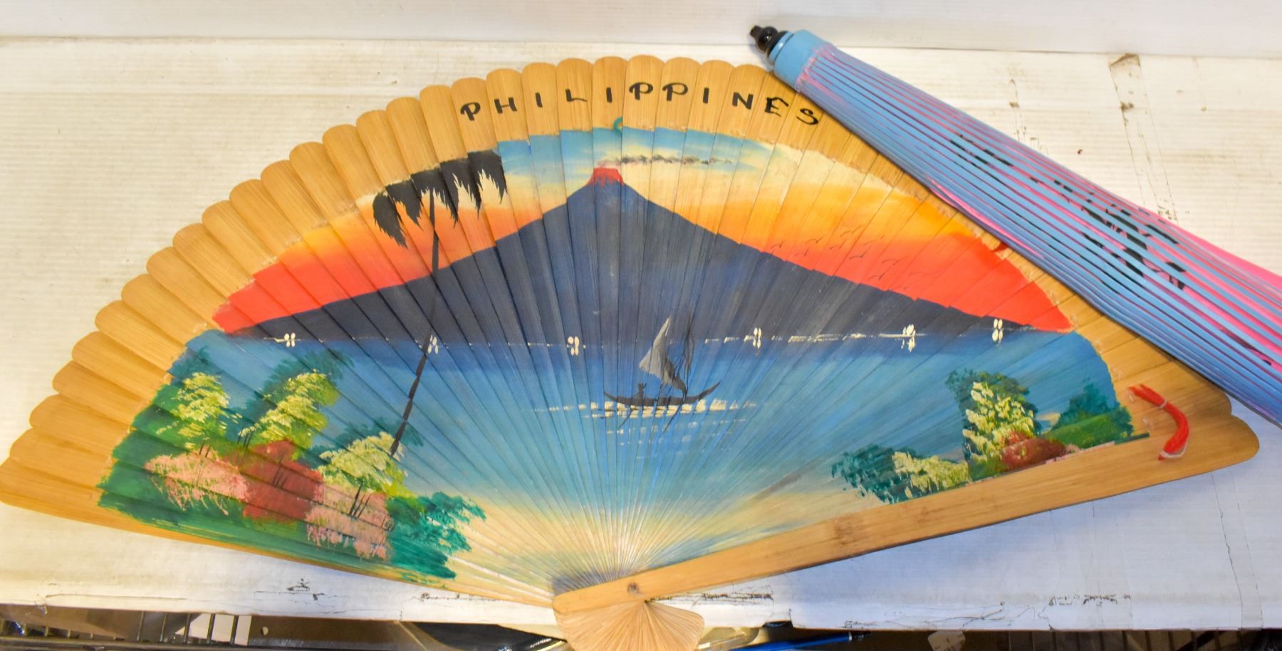 PHILIPPINES FAN WITH PANTED PICTURE AND UMBRELLA WITH BAMBOO