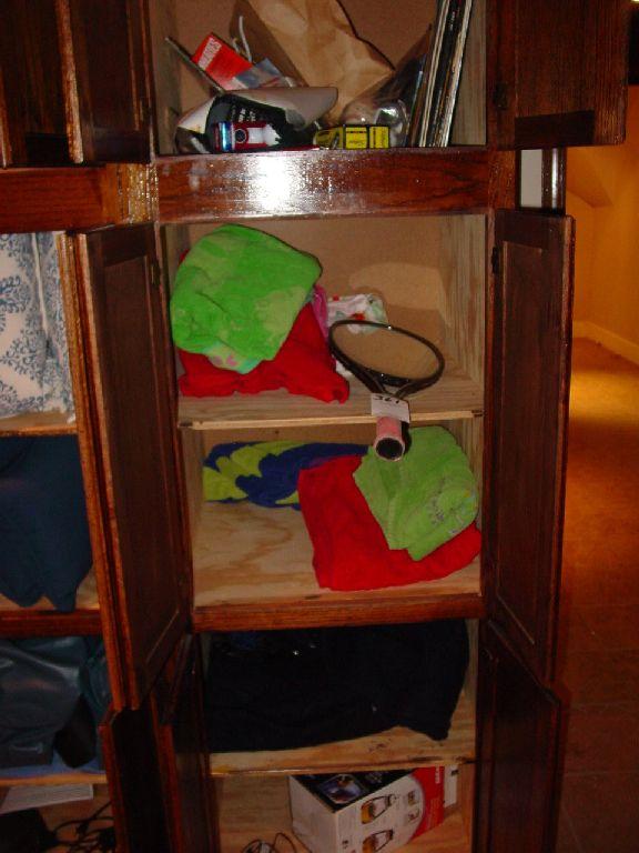 WALL HUNG MIRROR CUSTOM MADE FROM OLD TENNIS RACKET & MISC IN CABINET