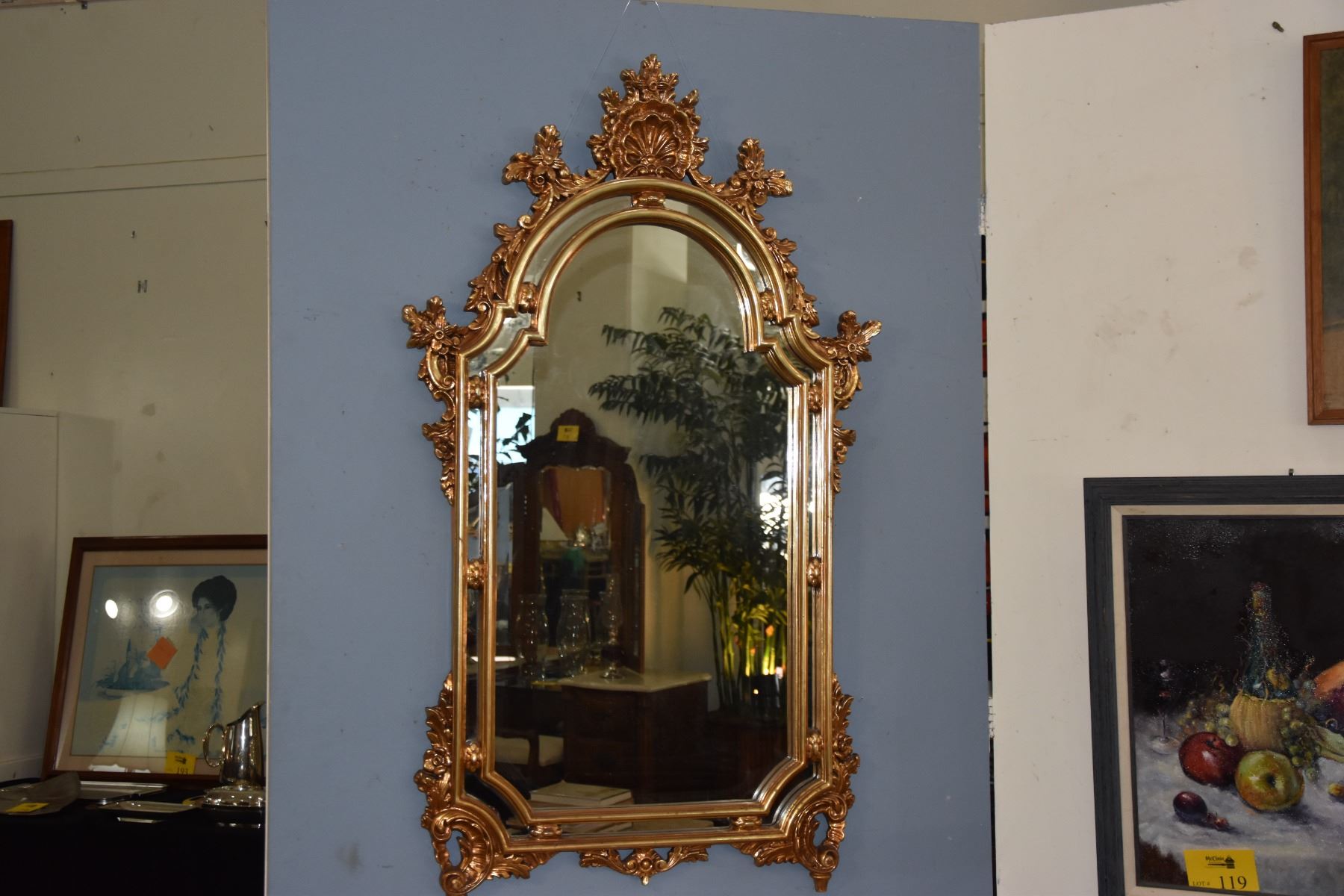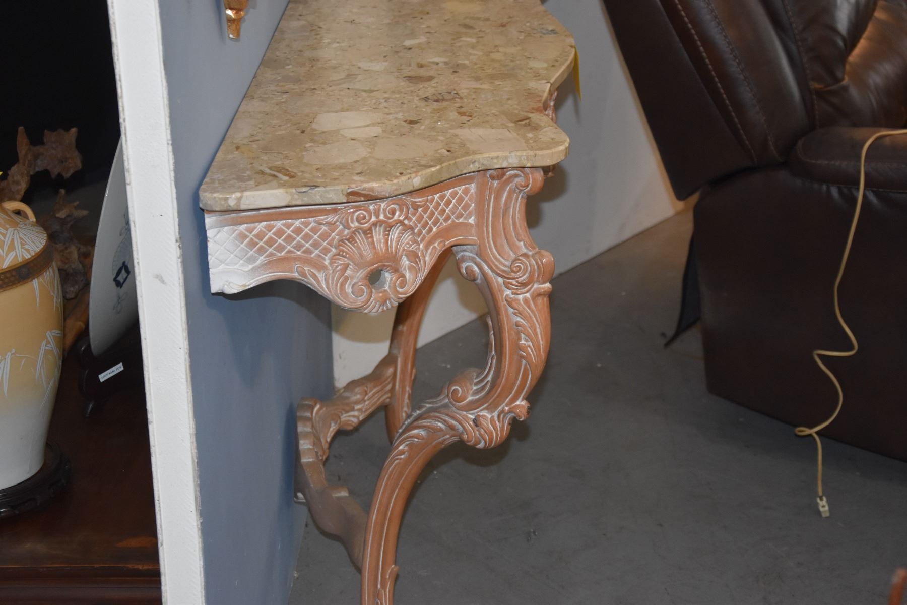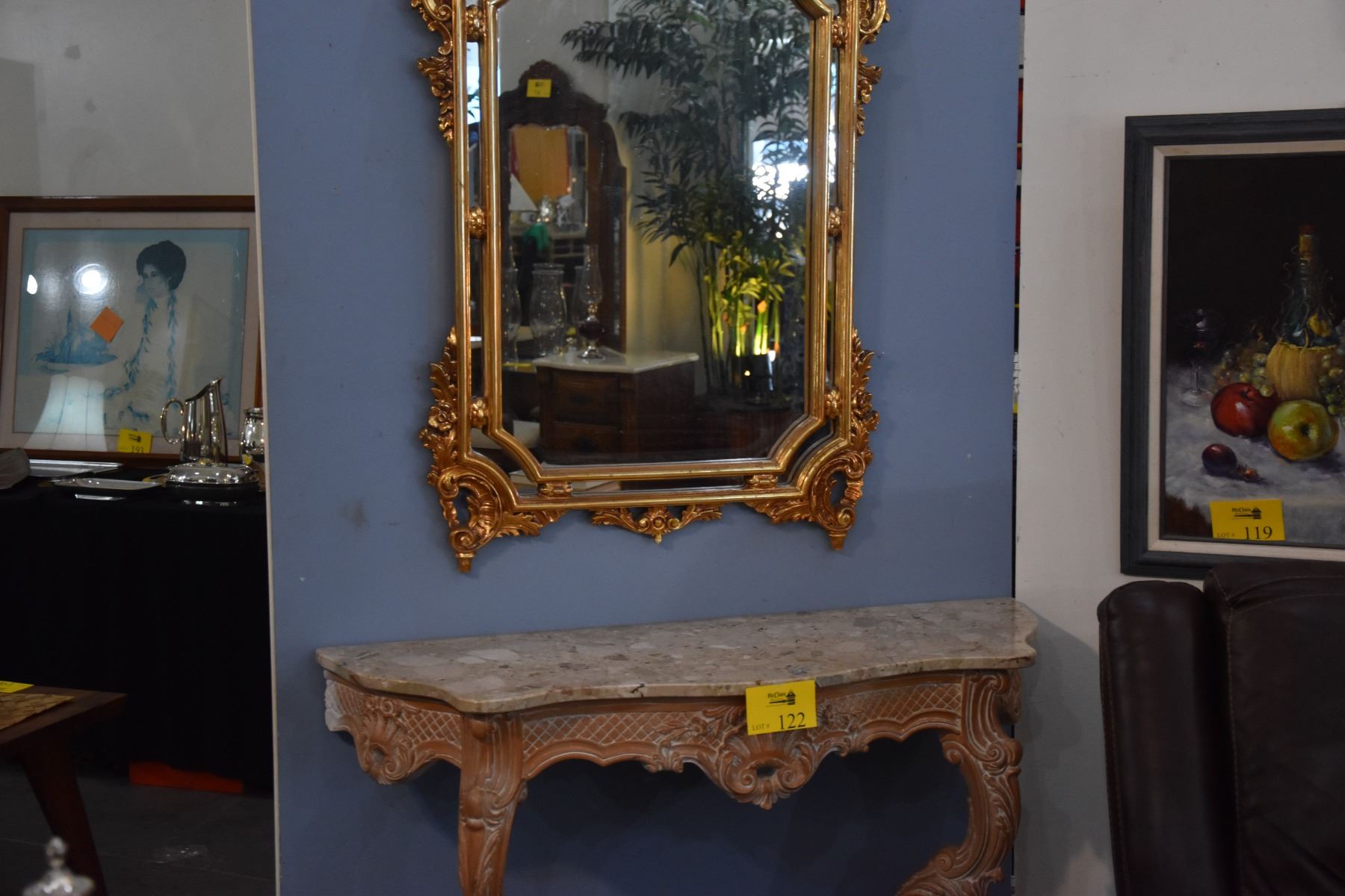 WALL MOUNTED CONSOLE TABLE W/MARBLE TOP & HOLLYWOOD REGENCY STYLE GILDED MIRROR (2 PCS)