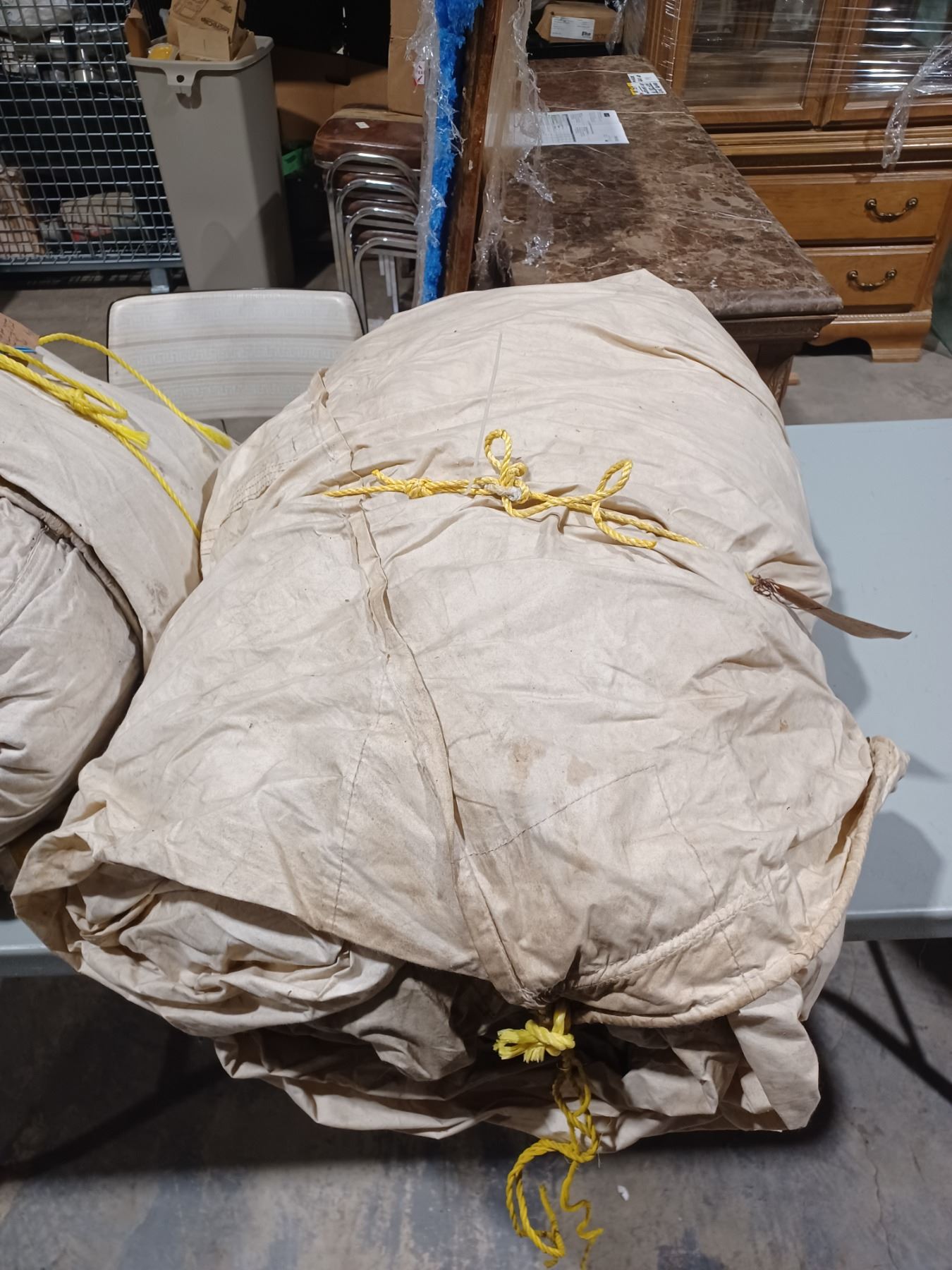 WALL TENT 14 X 16 COMES WITH 8 1/2' PEAK WITH 4' SIDE WALLS VERY GOOD SHAPE - NO CHIMNEY RINGS