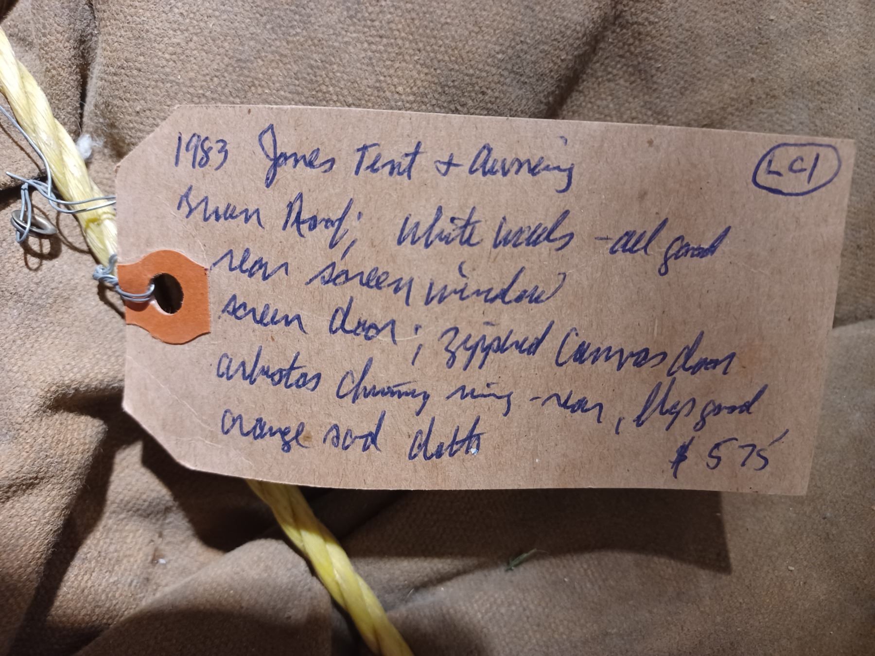 WALL TENT JONES TENT AND AWENING APPROX 12 X 14 HEAVY CANVAS GOOD SHAPE