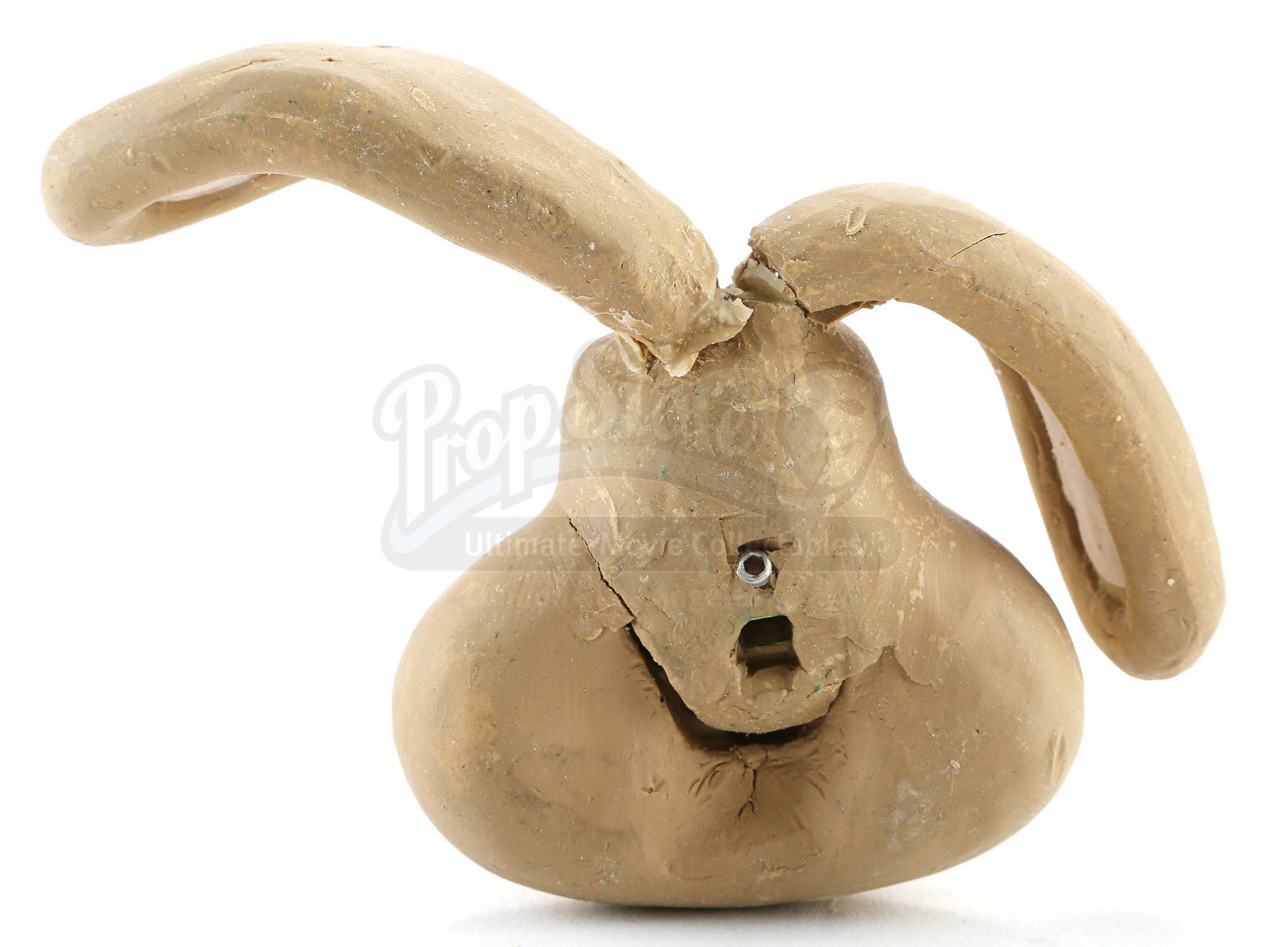 The head is made of clay over a metal armature, and resembles a grinning rabbit with two buck teeth. The stop-motion head shows some wear to the clay due to age, with breaks to the material at the ears. The piece remains in good overall condition. Dimensions: 10 cm x 6 cm x 4 cm (3 ¾” x 2 ½” x 1 ½”)