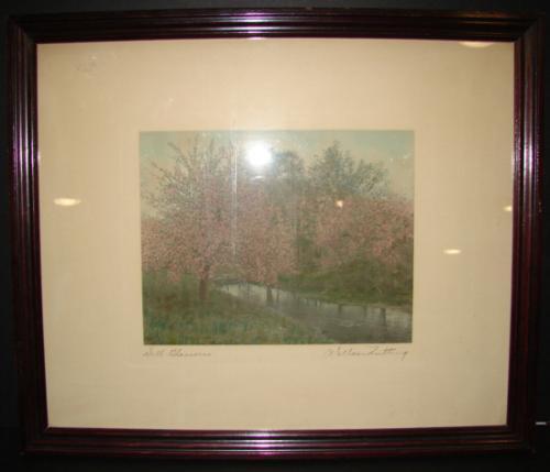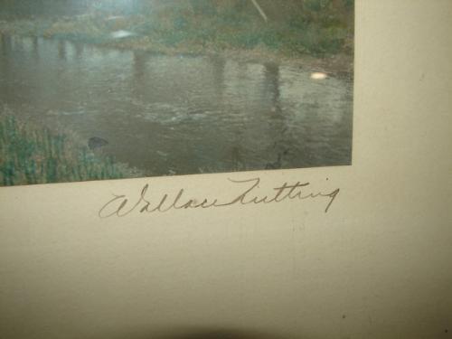 WALLACE NUTTING EXTERIOR PRINT. Depicts a group of trees near stream. Signed at lower left “Dell Blossoms” and signed in lower right “Wallace Nutting”. 15.5” x 18.5” framed.