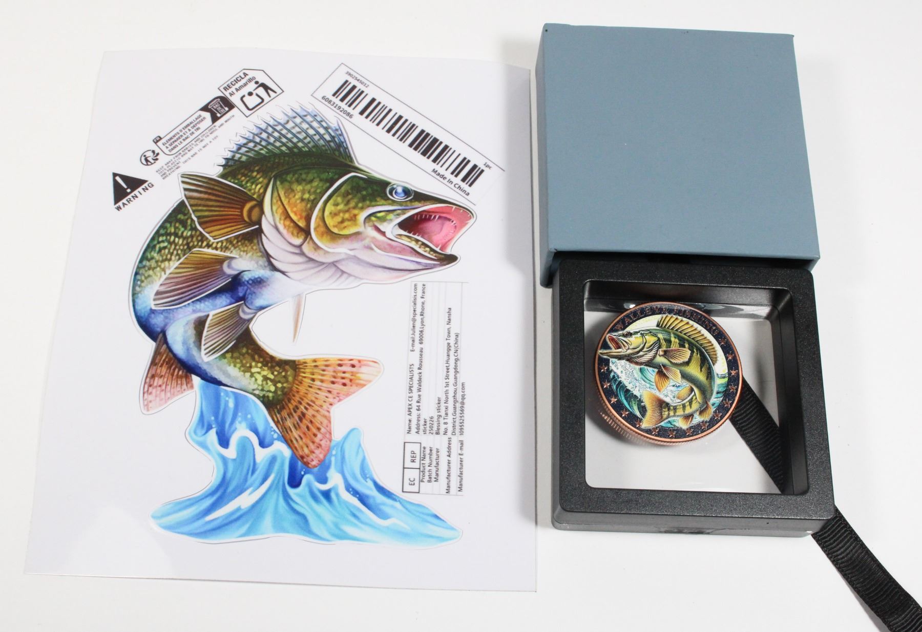 COLOURIZED ROUND. NORTHERN NUGGETS. COMES WITH DISPLAY BOX. PERFECT GIFT FOR THAT FISHING ENTHUSIAST. ALSO COMES WITH LARGE WALLEYE BUMPER STICKER
