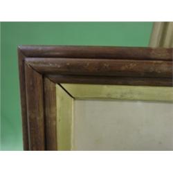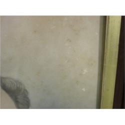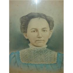 WALNUT AND GILT DECORATED FRAME with color sketch of female. Slight water staining to frame and foxing to sketch. 18" x 22.5" framed.